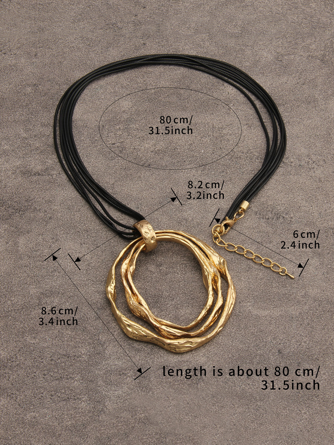Big pendant necklace size is 4.8cm(1.88inch)-5cm(1.96inch), rope length about 78cm(30.7inch)