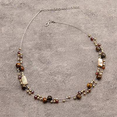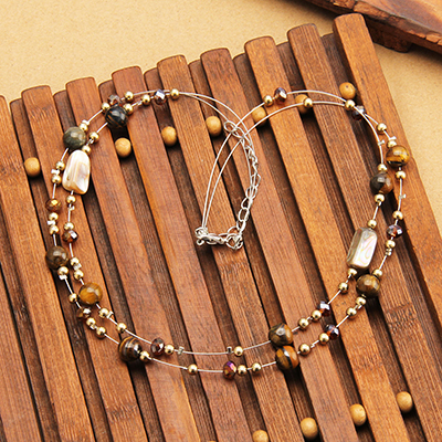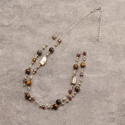 GelConnie Long Necklace for Women Tiger Eye Beaded Necklace Natural Stone Bead Necklace Vintage Boho Style Jewelry Gifts