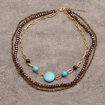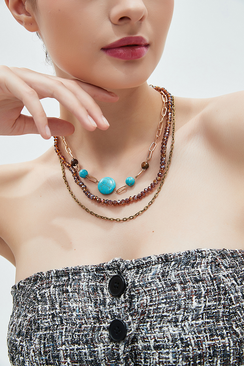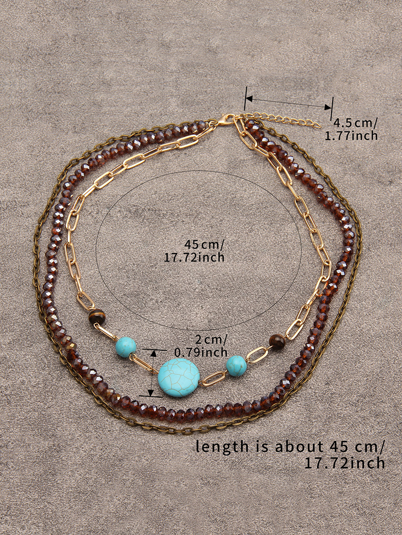 GelConnie Turquoise Beads Necklace Silver Chunky Layered Necklaces for Women Boho Turquoise Beaded Neckalces Homemade Jewelry