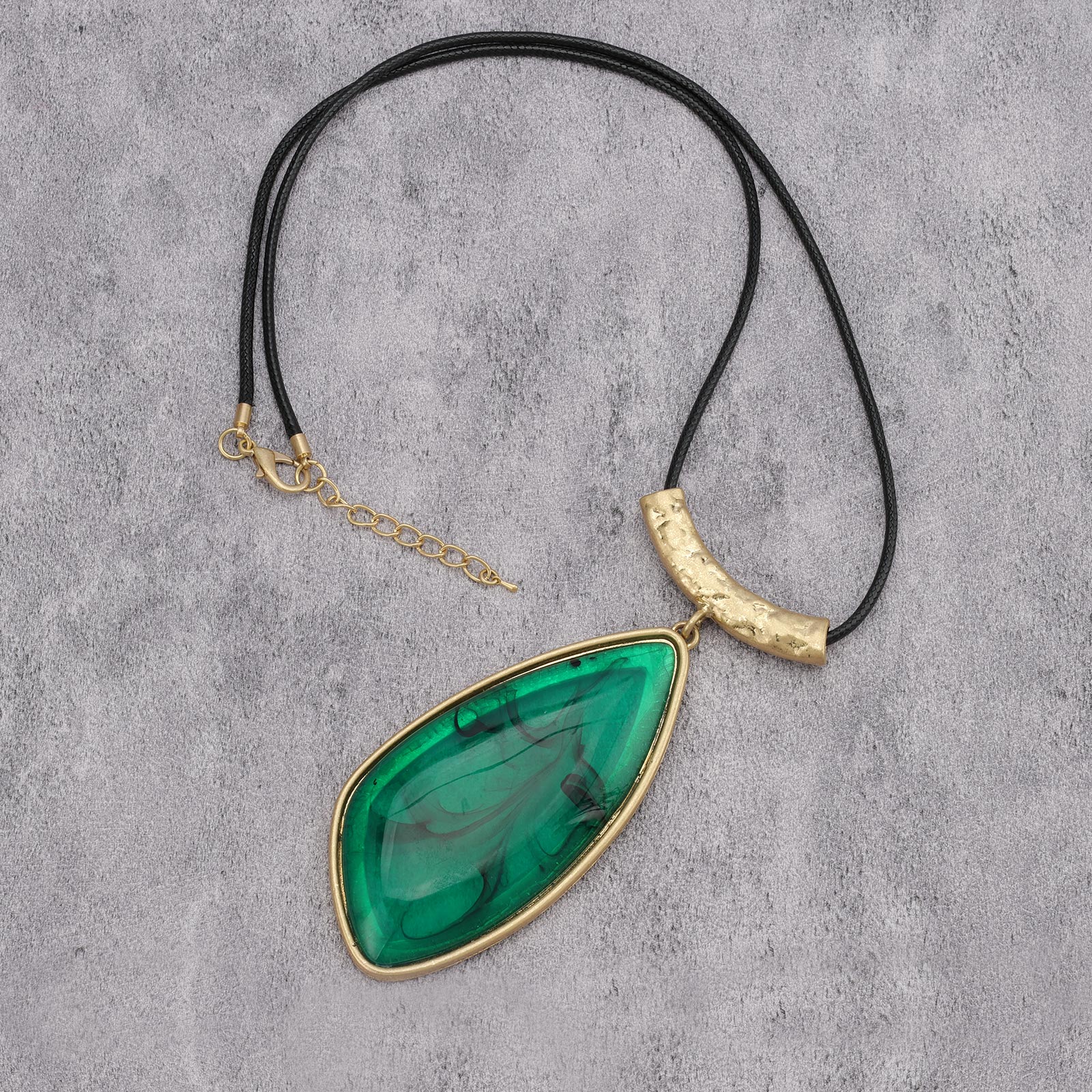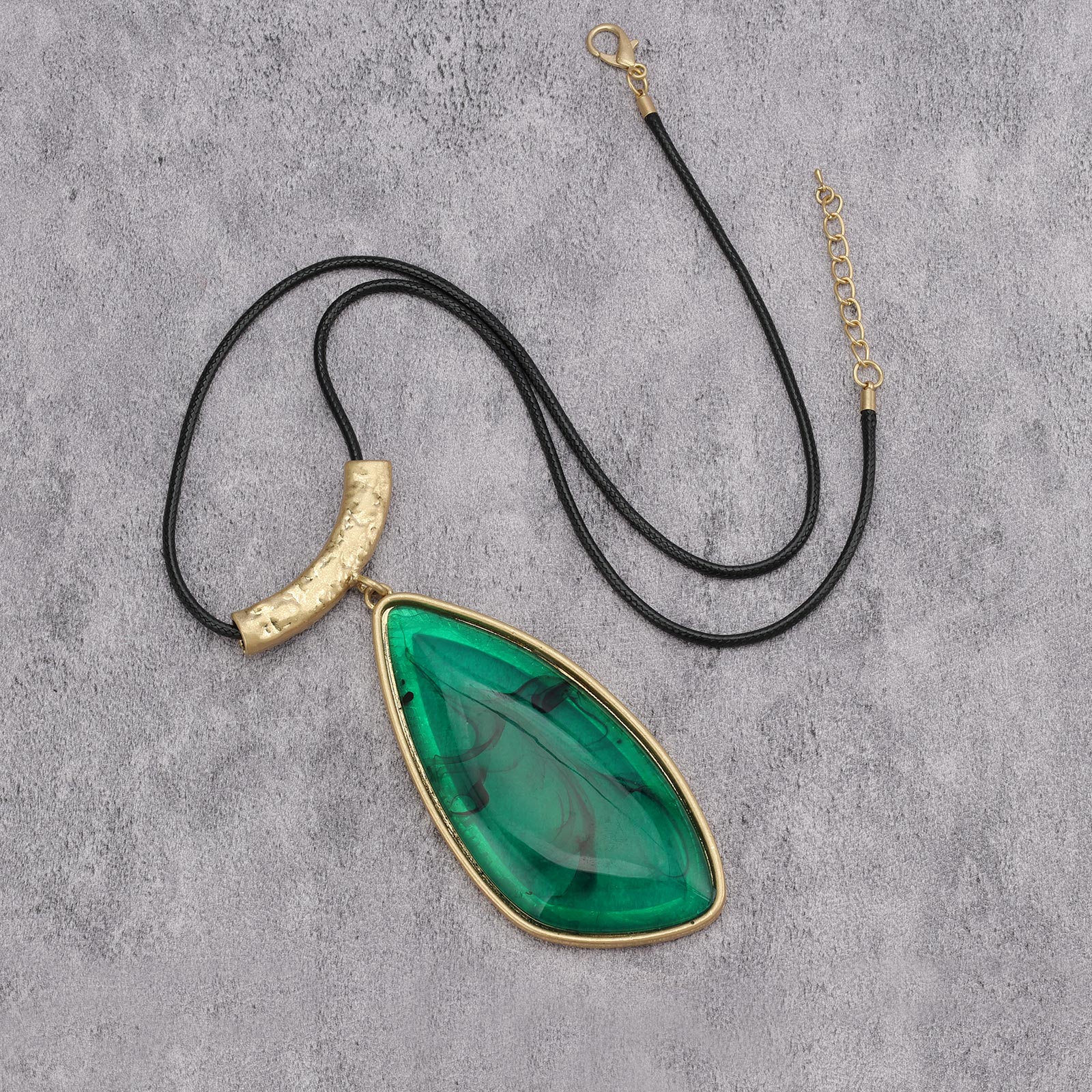 Gelconnie Long Pendant Necklace for Women Chunky Boho Large Pendants Necklaces with Green Stone Pendant Vintage Jewelry
