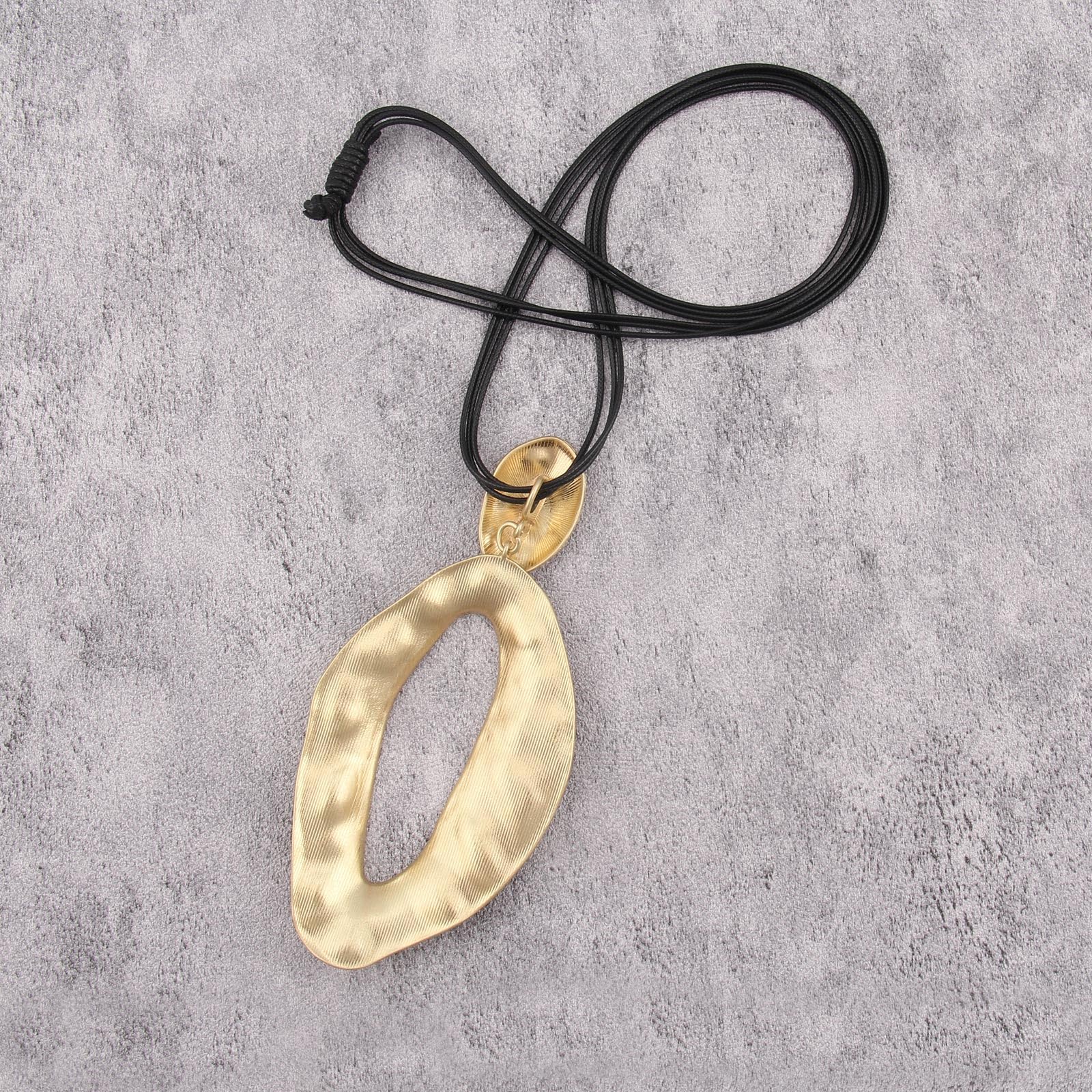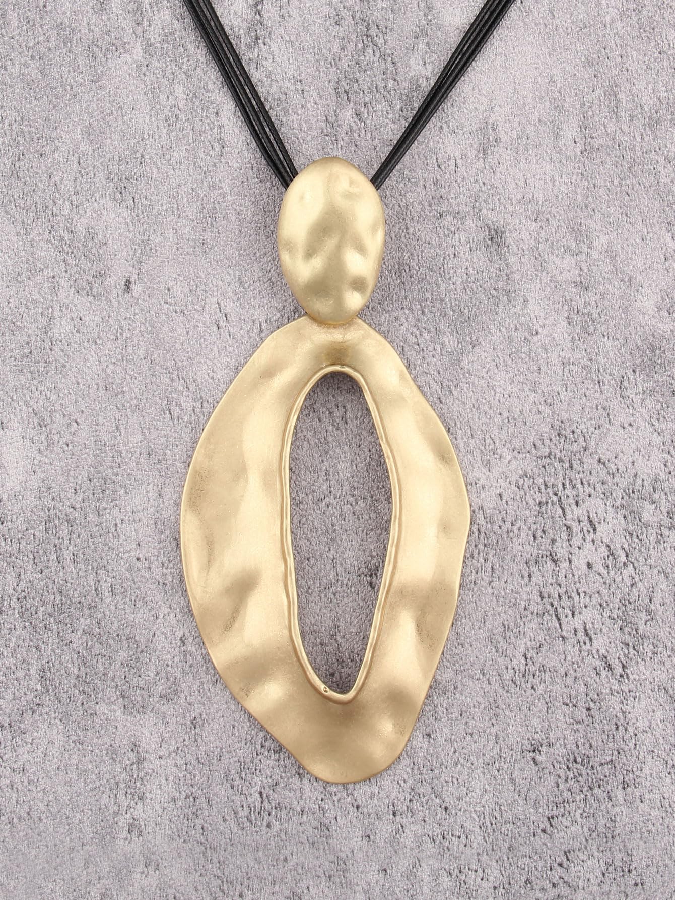 Abstract, organic gold-tone pendant with a hammered texture.