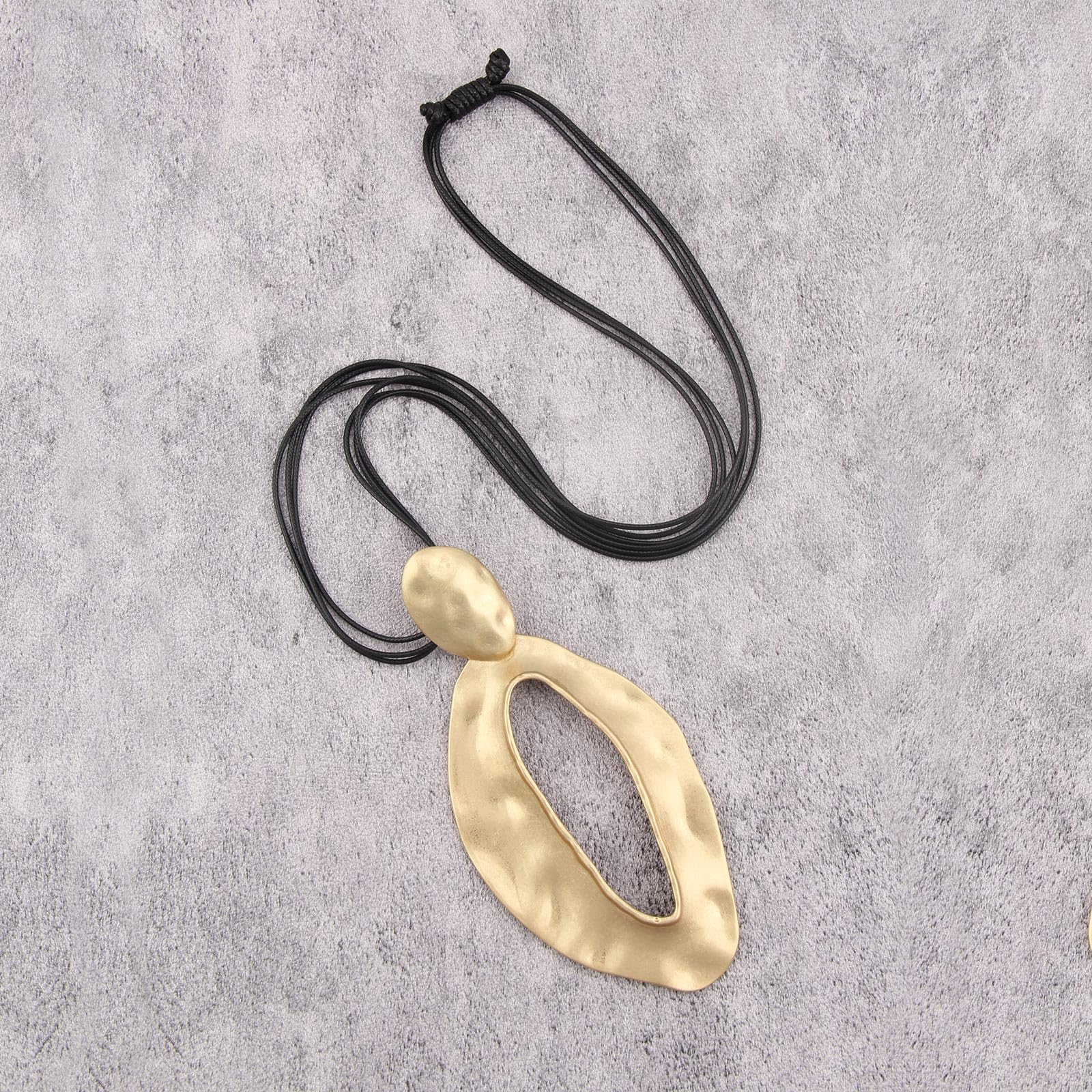 Gelconnie Black String Necklace with Pendant, Chunky Gold Women Casual Boho Leather Necklace Circle Statement Necklace Vintage Long Necklace with Leather Cord 90s Outfit Accessories