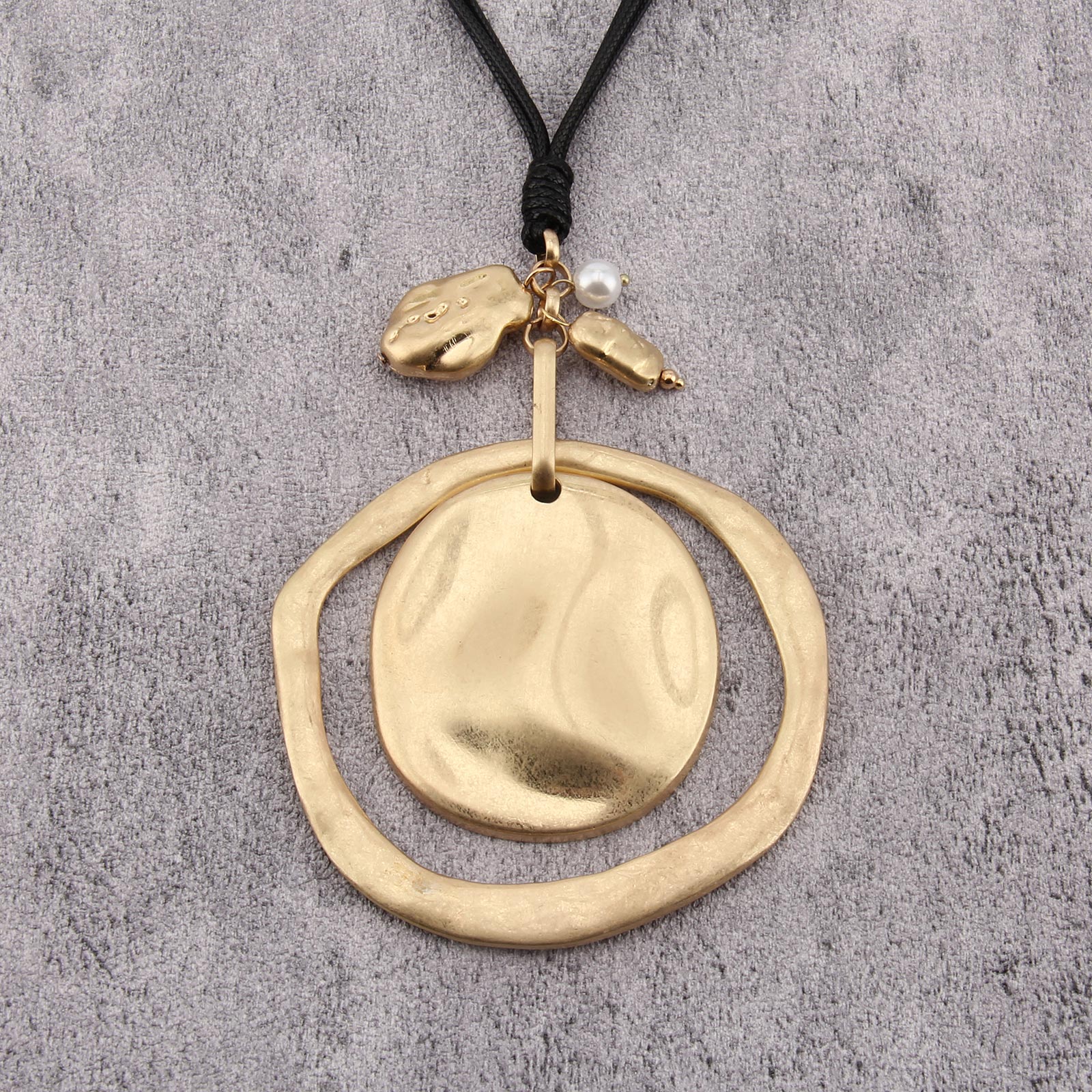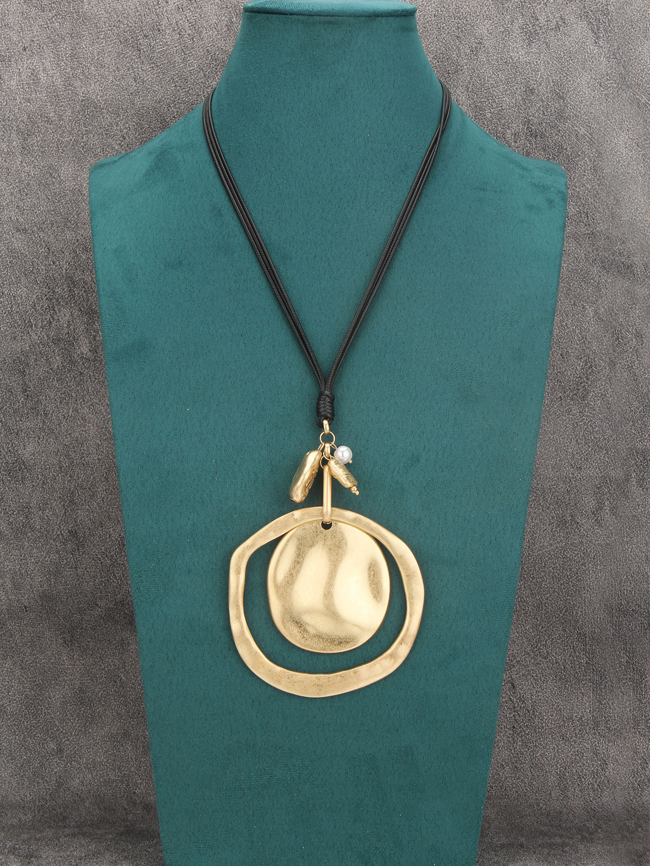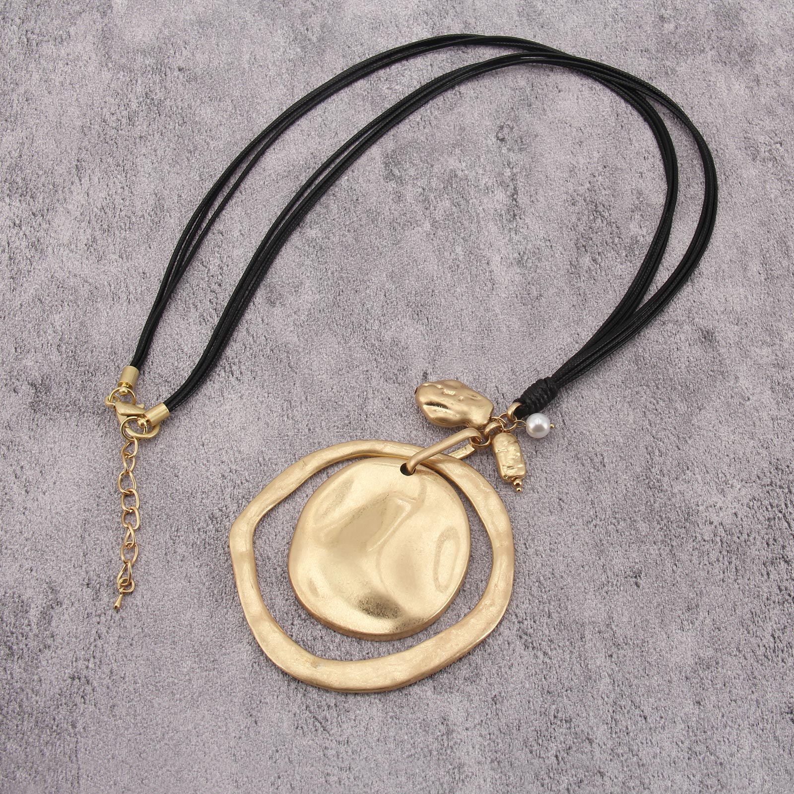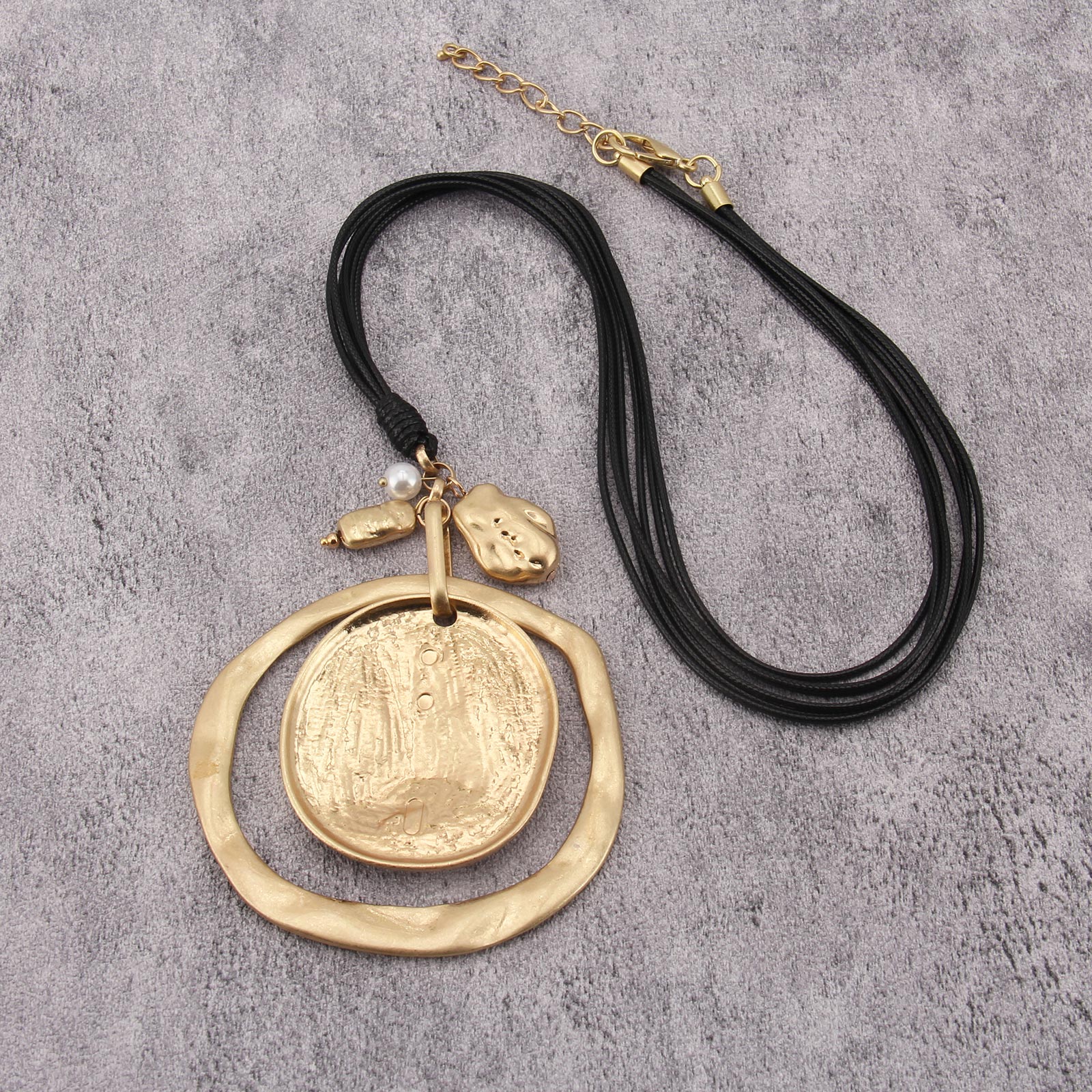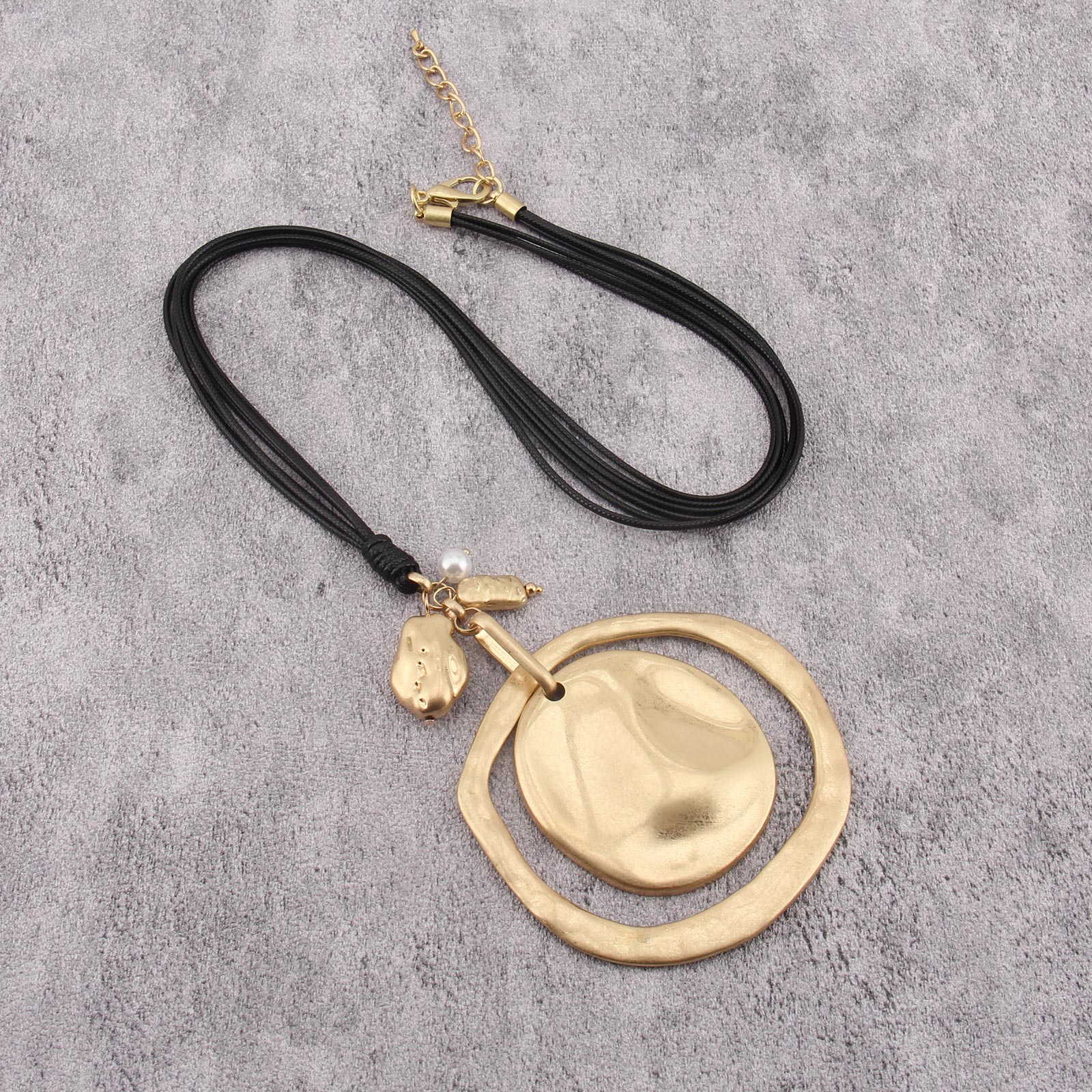 Elegant Leather Pendant Necklace with Gold Pendant Womens Long Necklaces Fashion Boho