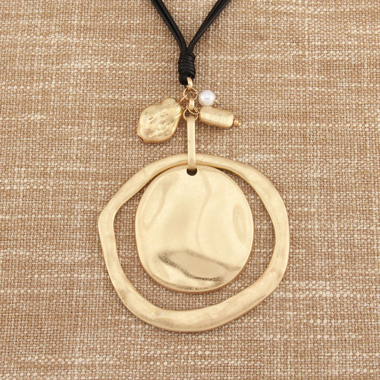 Gelconnie Vintage Minimalist Gold Circle Pendant Leather Necklace, Black cord necklace with pendant, boho pendant Long Sweater Necklace