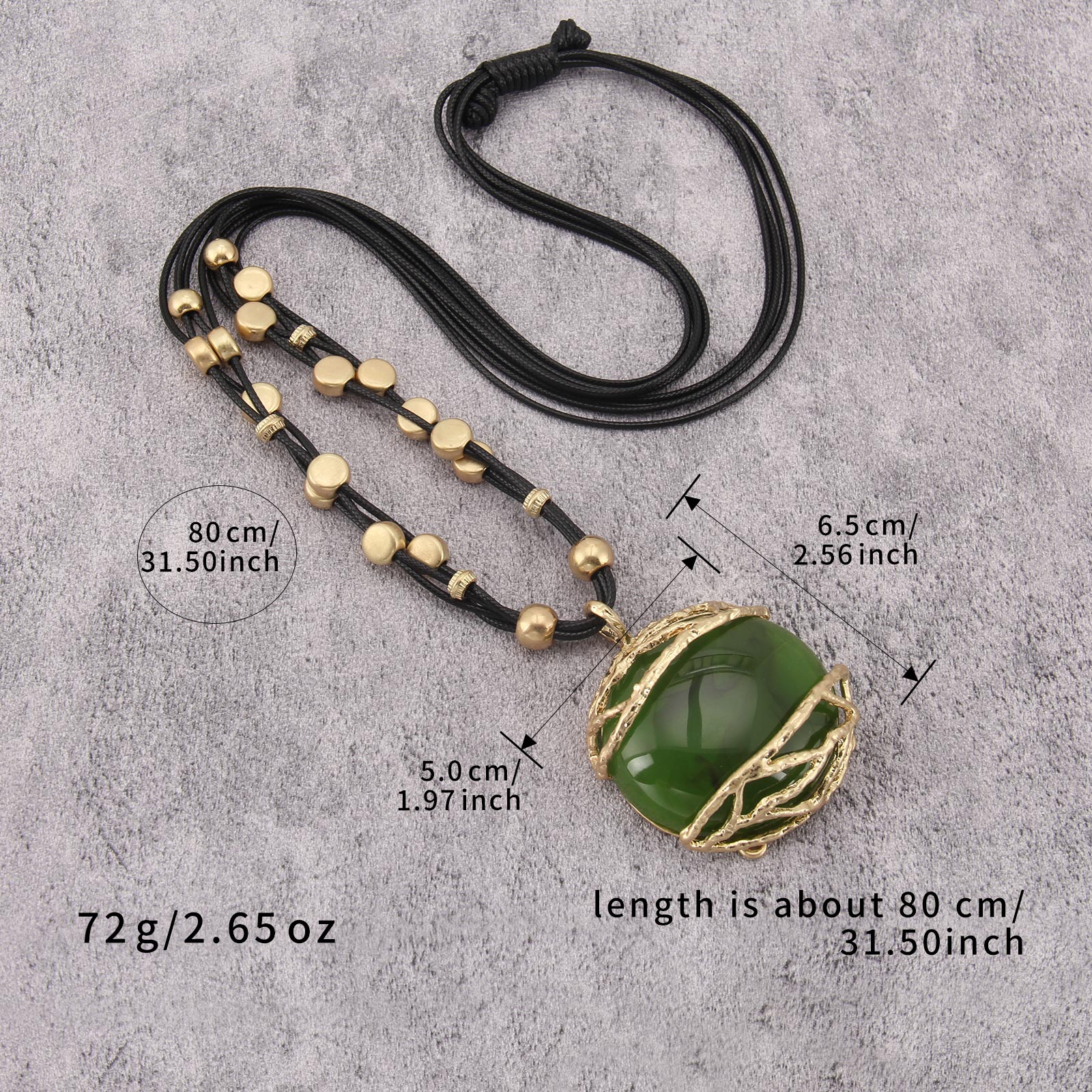 Green Resin Pendant: The centerpiece features a stunning green resin stone with marble-like swirls,