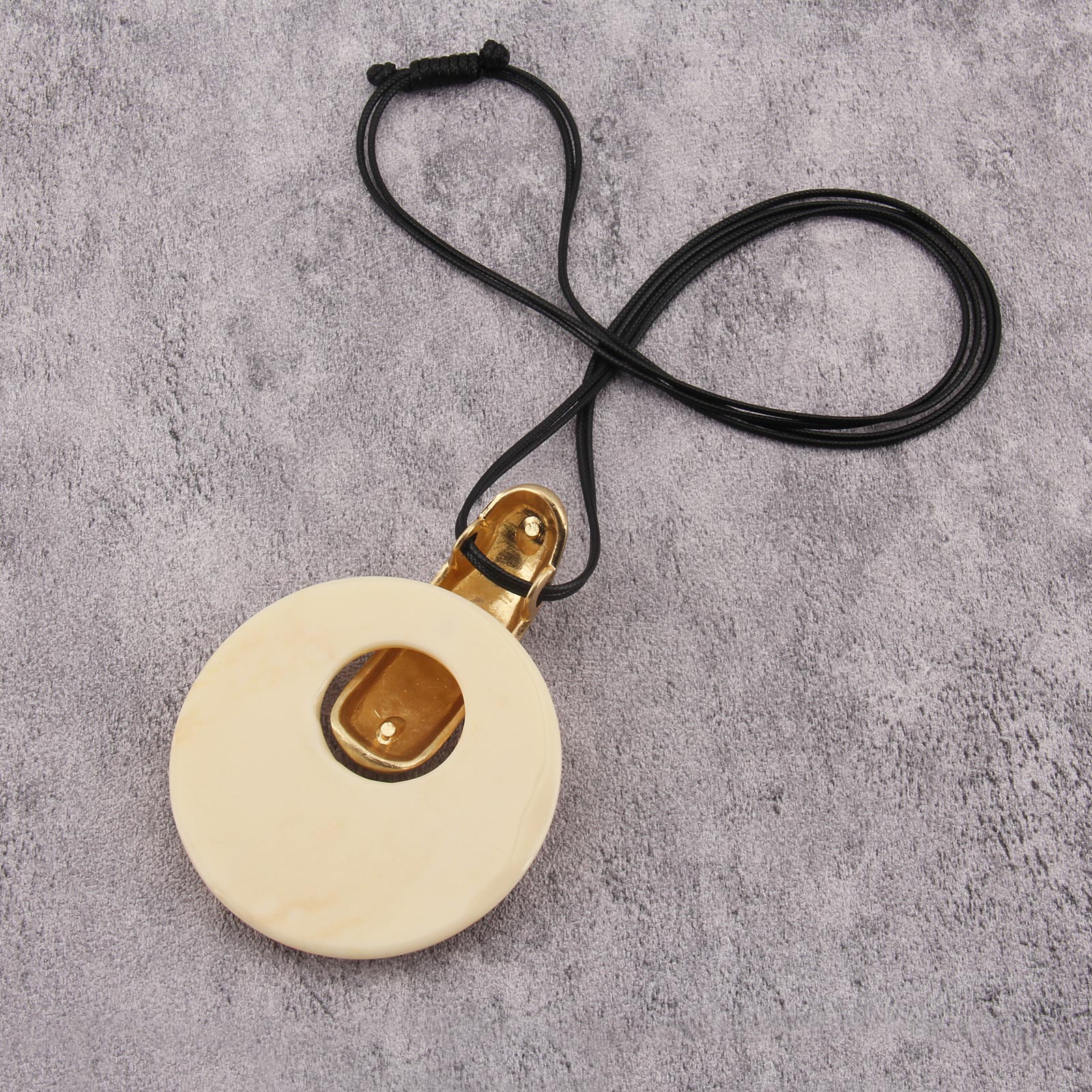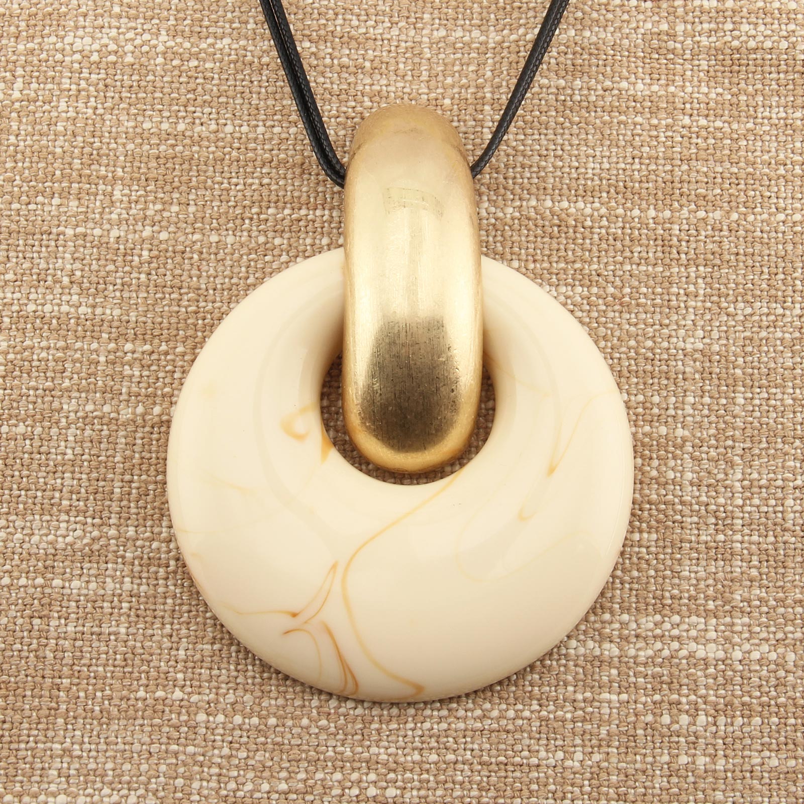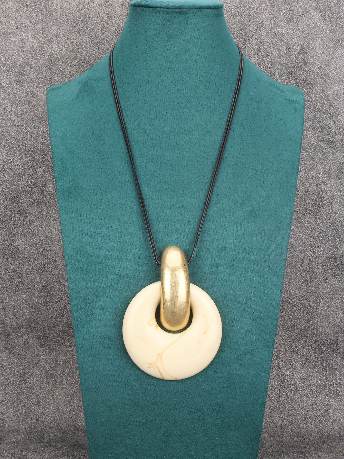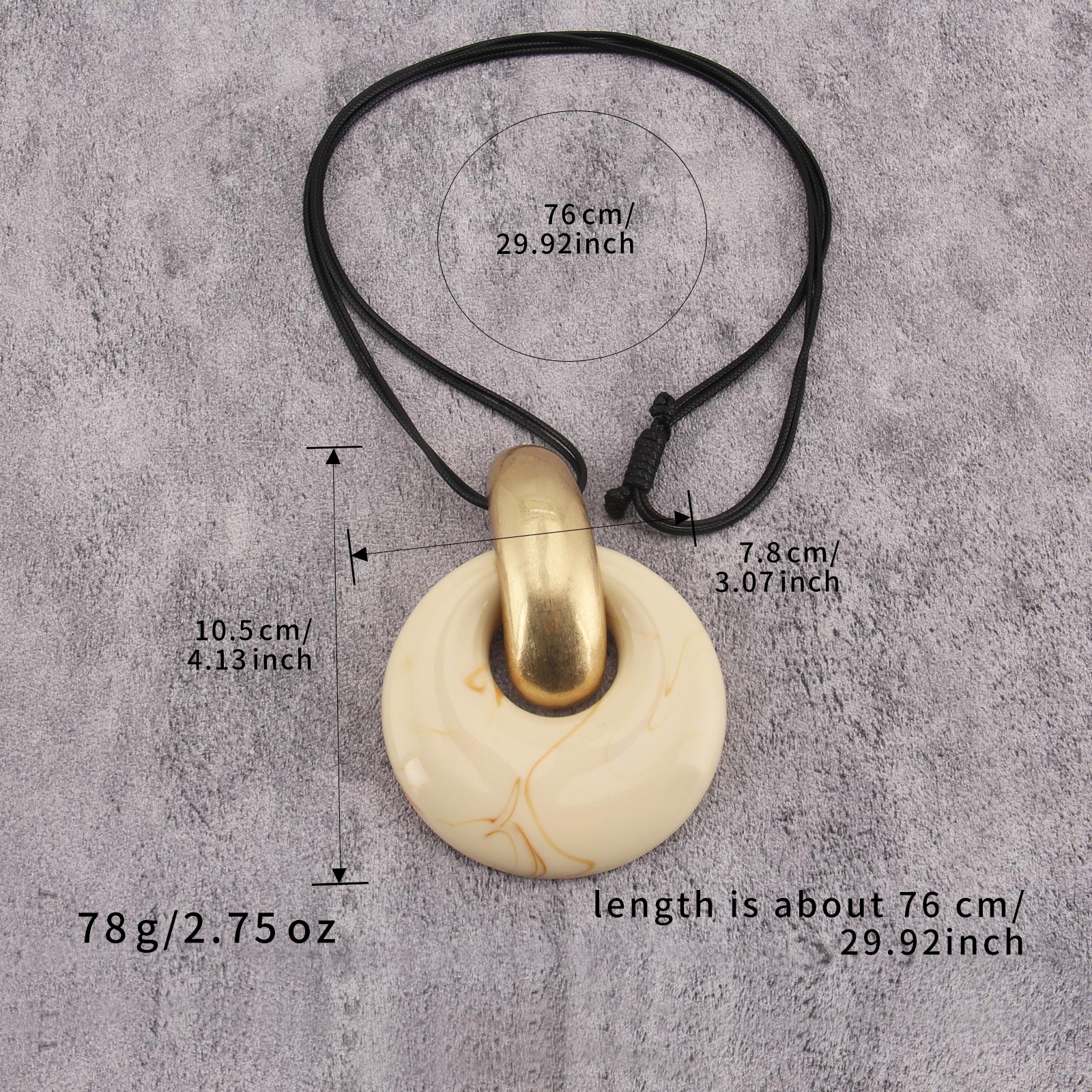 Gelconnie Ivory White Round Pendant Necklace, Funky Boho Necklace Women, Large Bohemian Necklace with Big Pendant Handmade