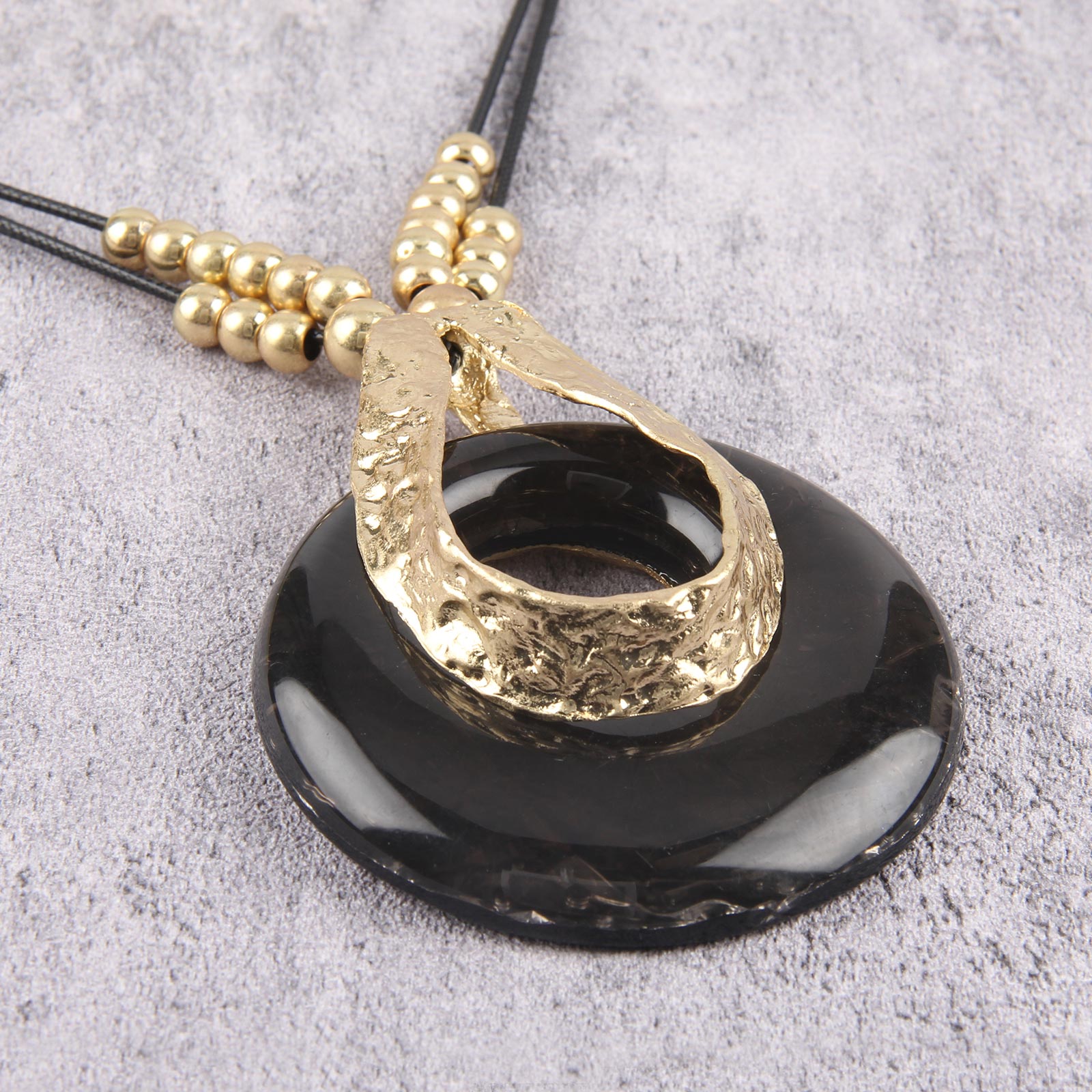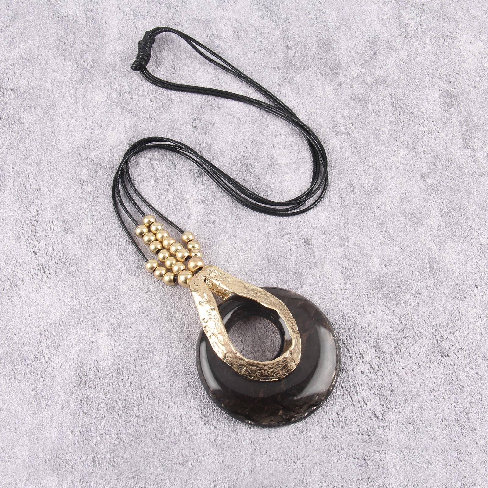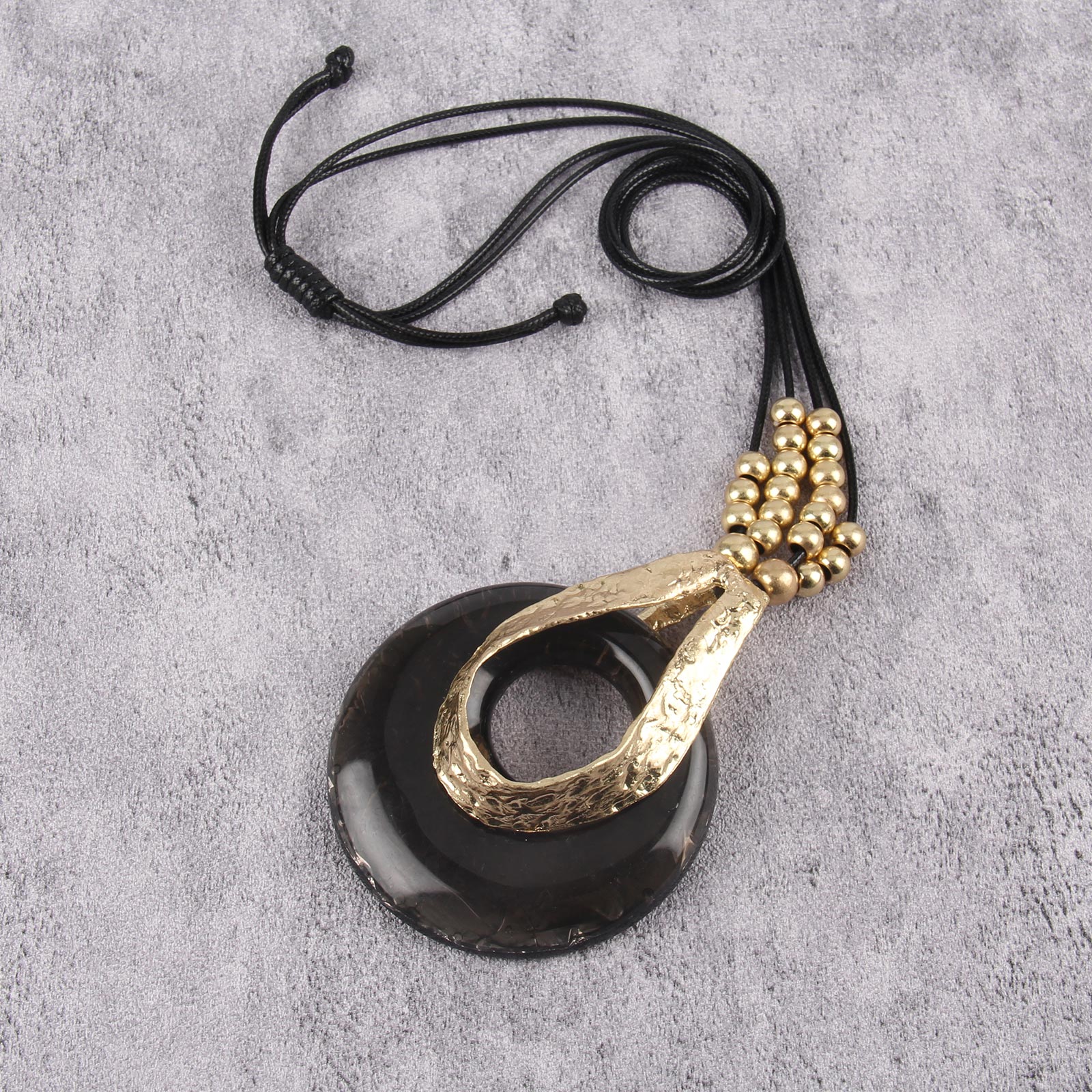 Black Circle Pendant: Elegant round donut pendant necklace black and fittings create a striking contrast with the leather cord.