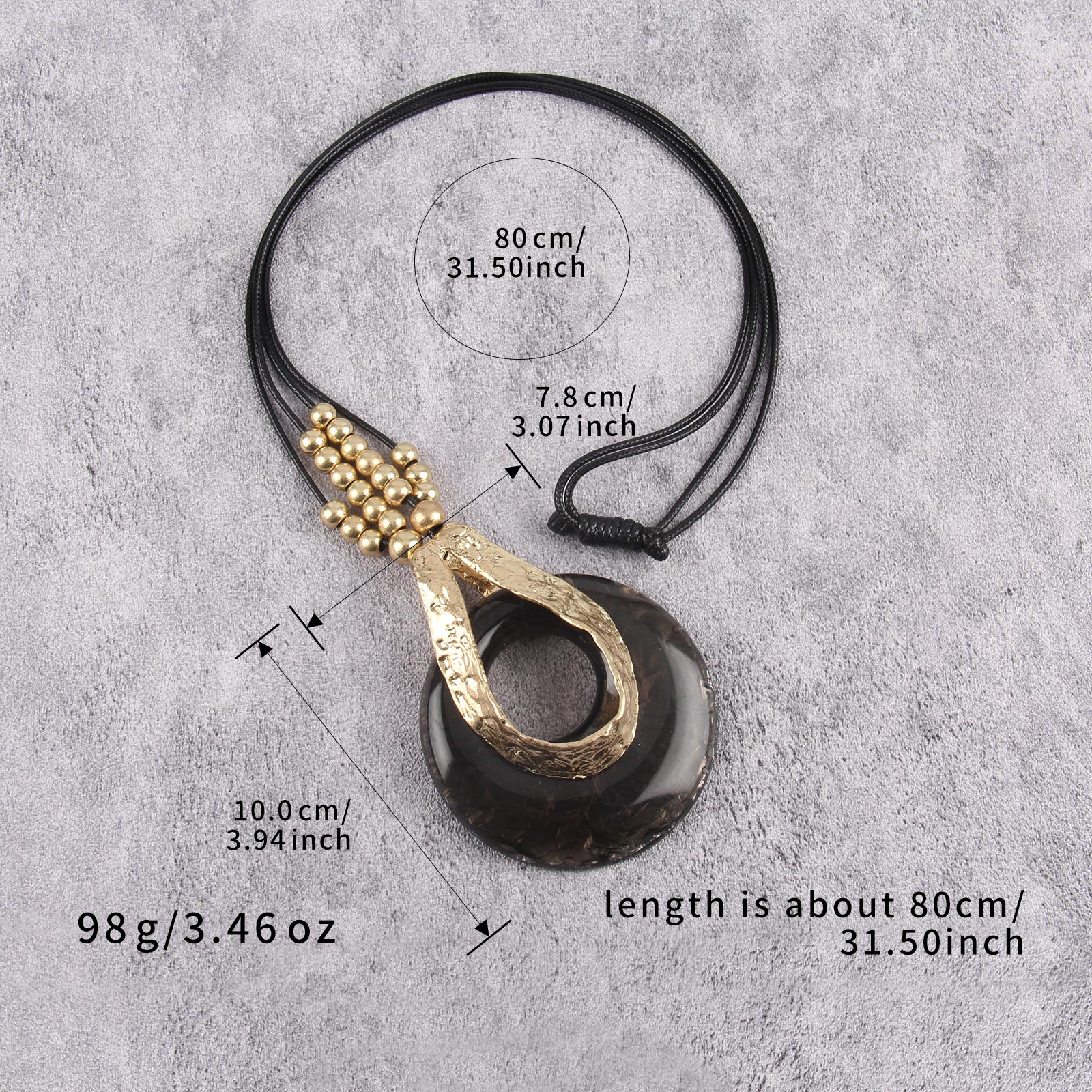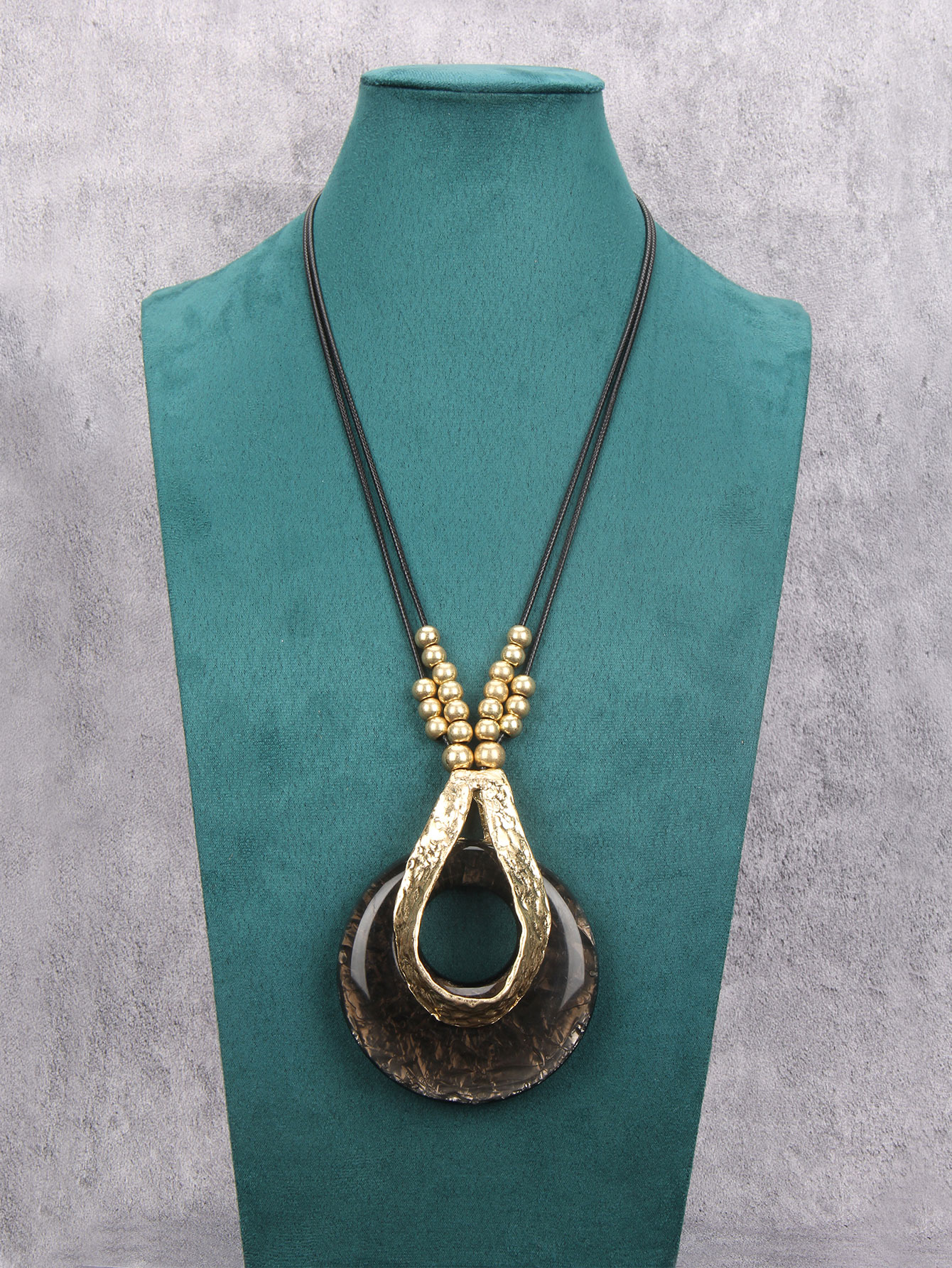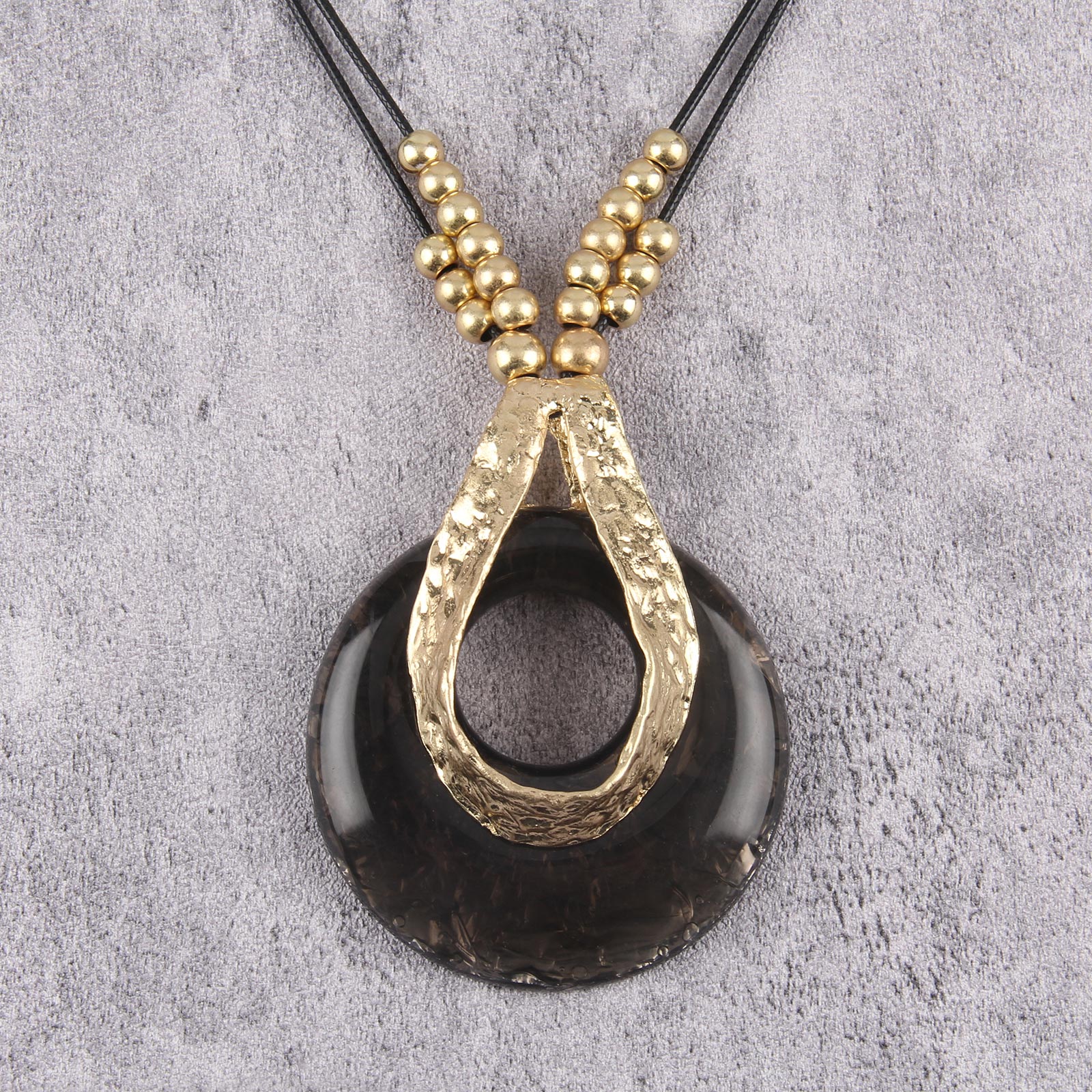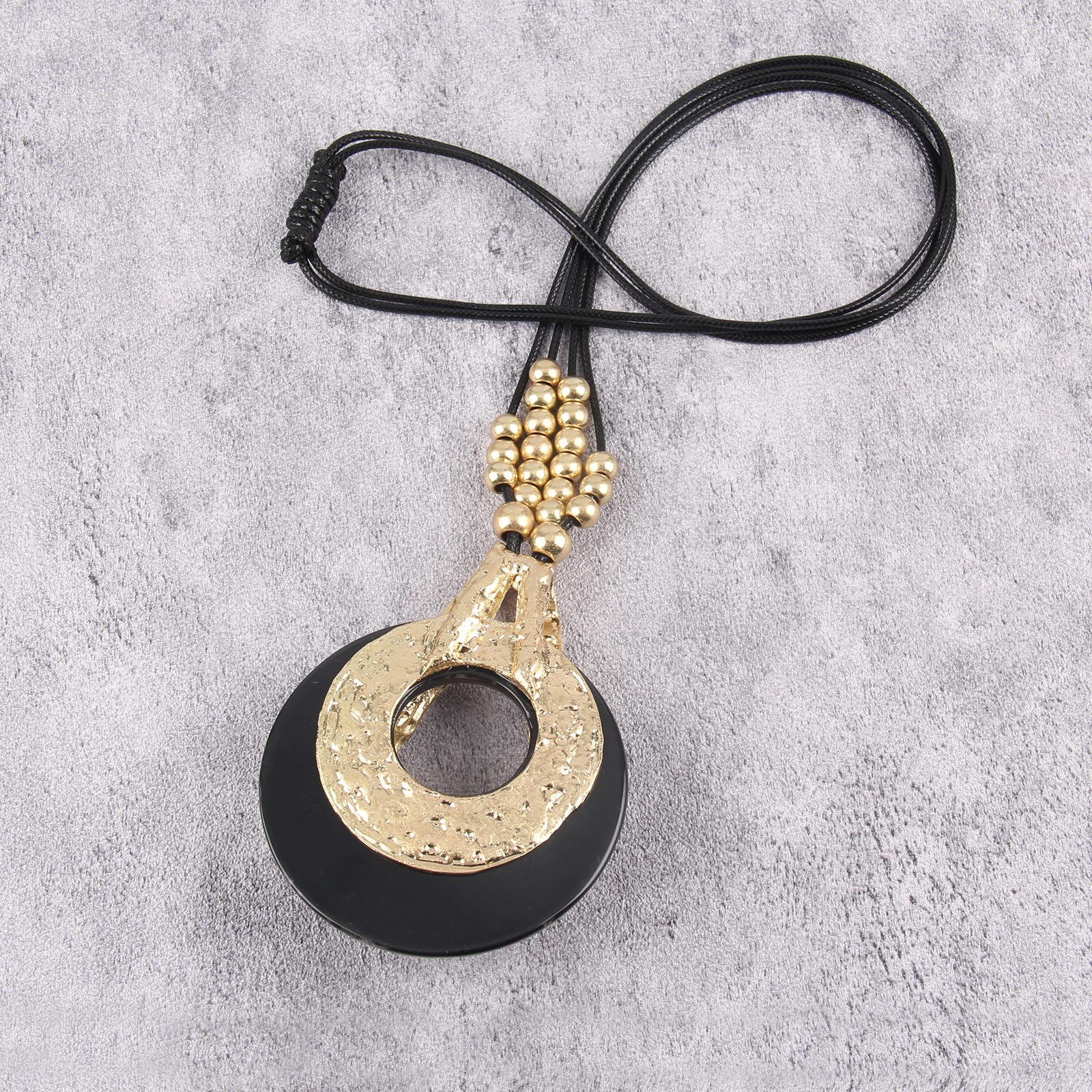 Gelconnie Vintage Boho Necklaces Women Black String Gold Necklace Long Leather Beaded Chunky Pendant Necklace Large Statement Accessories