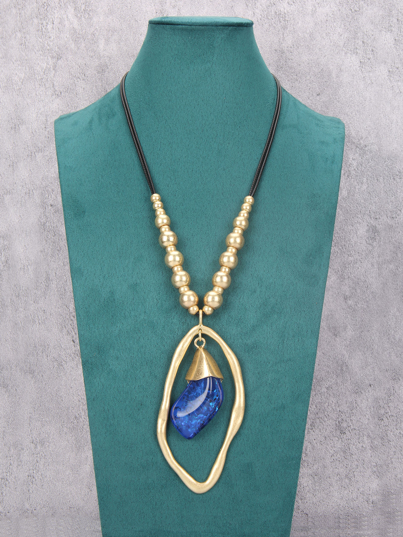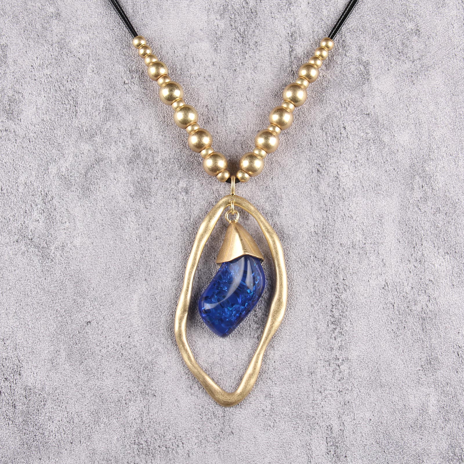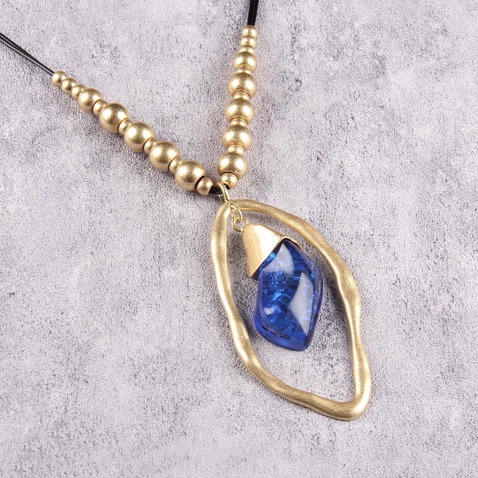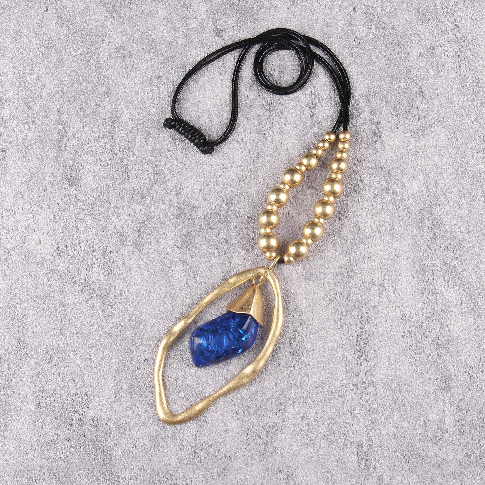 Gelconnie Boho Necklace Blue Chunky Gold Pendant Necklace Black Cord Handmade Boho Jewelry Women Choker Long Casual Necklaces