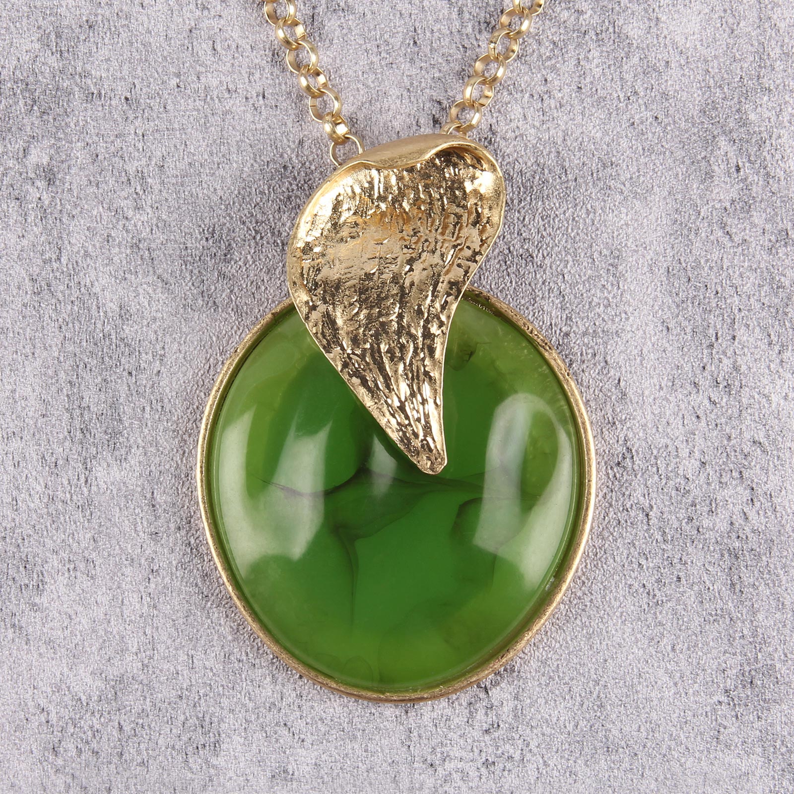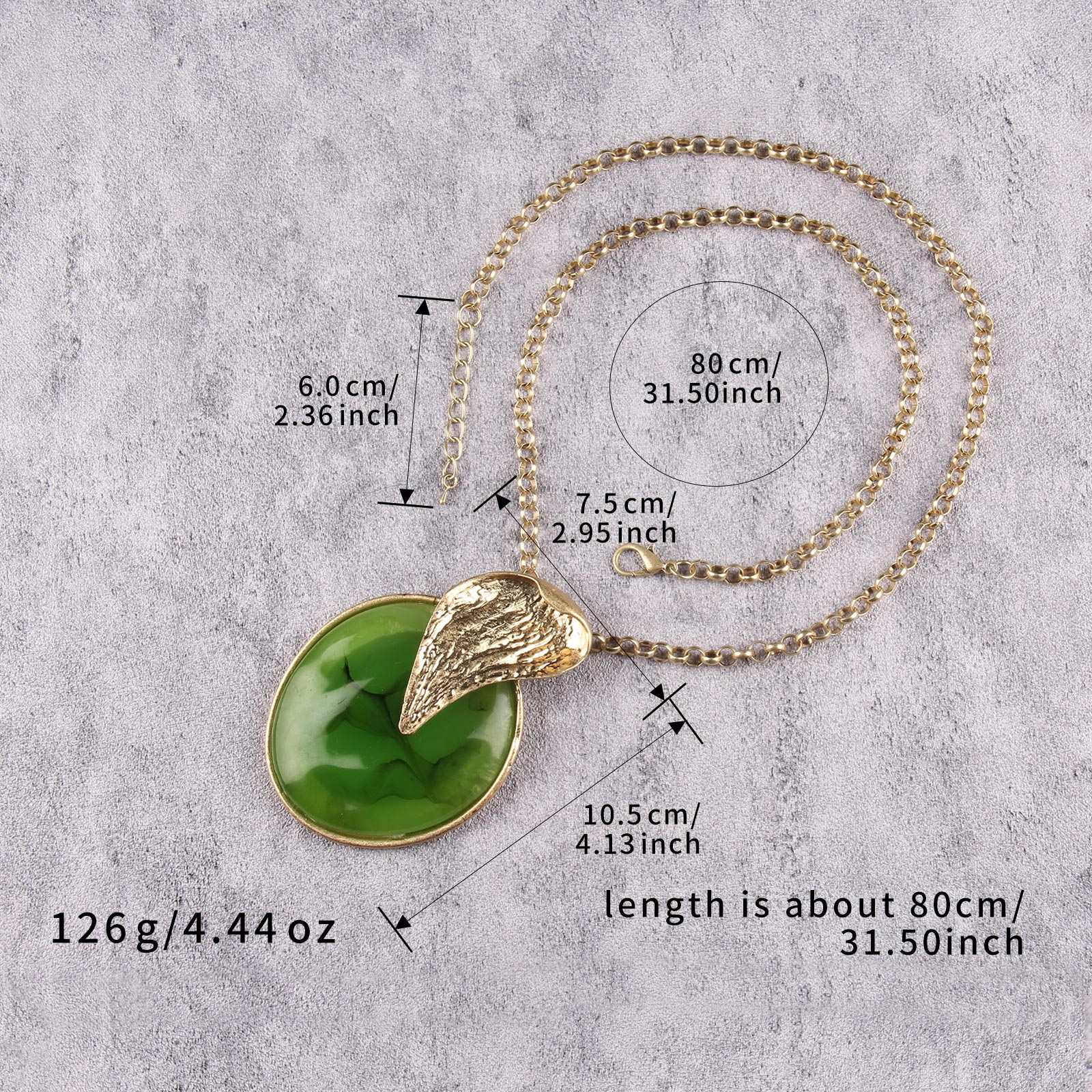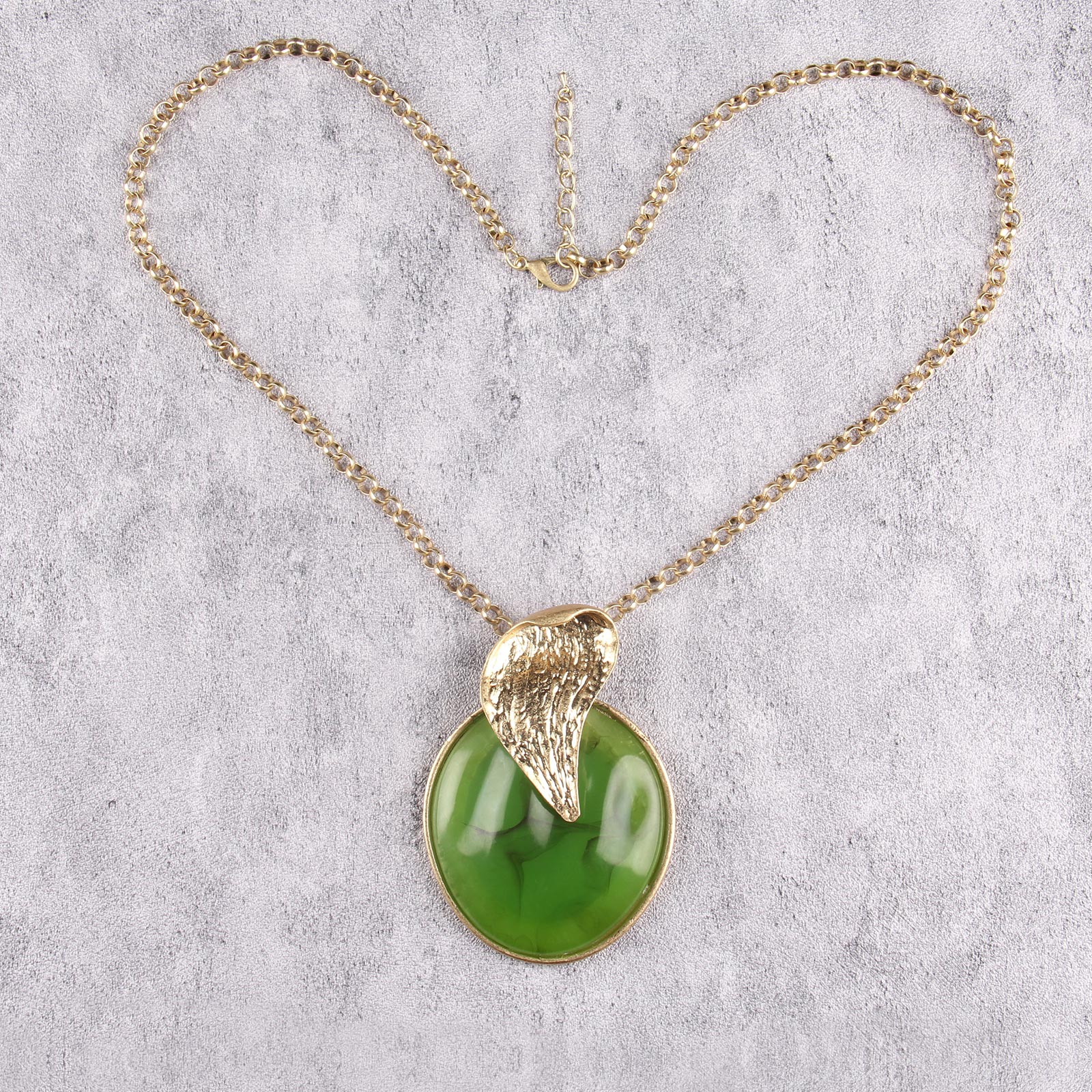Gelconnie Green Pendant Necklace with Gold Chain Necklace Statement Necklace Circle Large Pendant Necklace Boho for Women