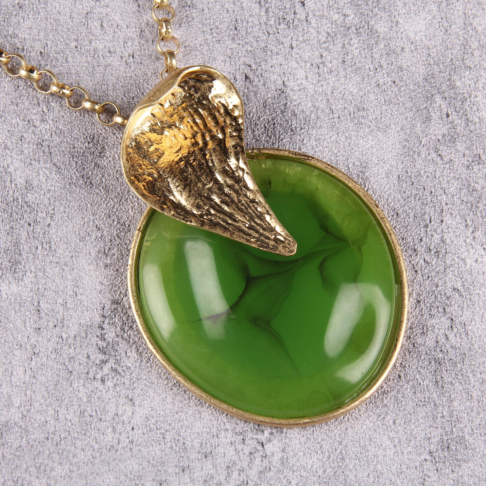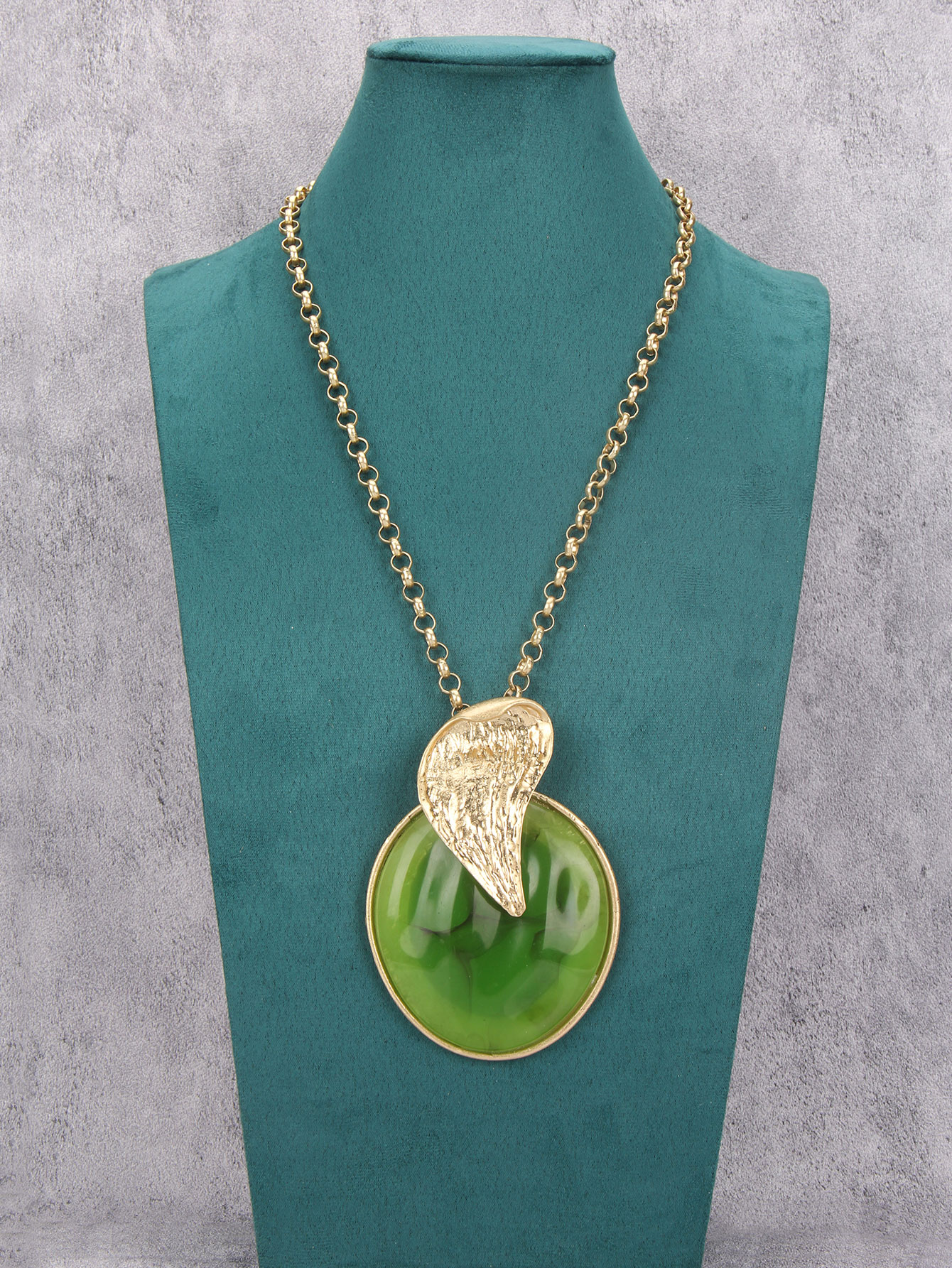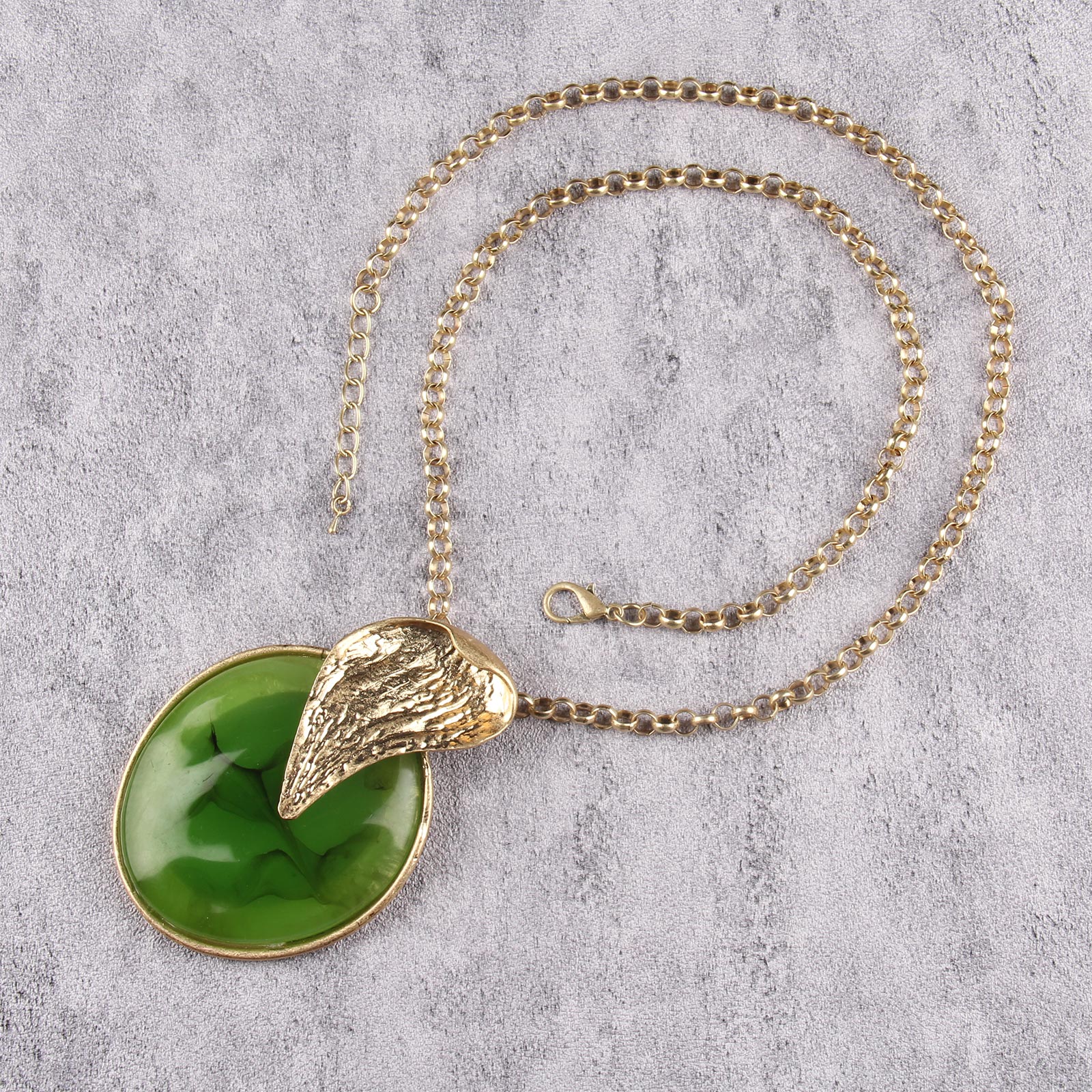Gelconnie Green Pendant Necklace with Gold Chain Necklace Statement Necklace Circle Large Pendant Necklace Boho for Women