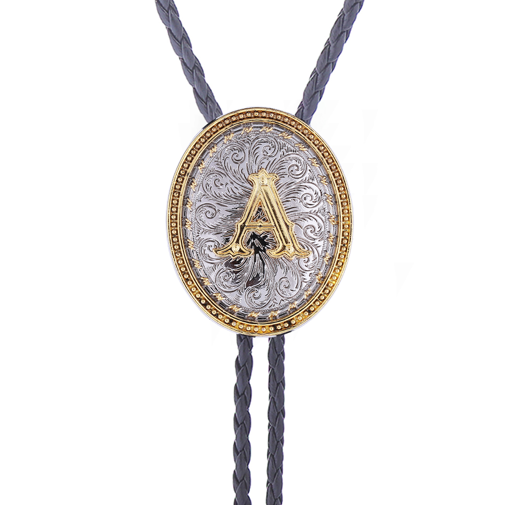 Western Bolo Tie for Men - Golden Initial Letter ABCDMJR to Z Leather Necktie Accessories Texas Style Jewelry