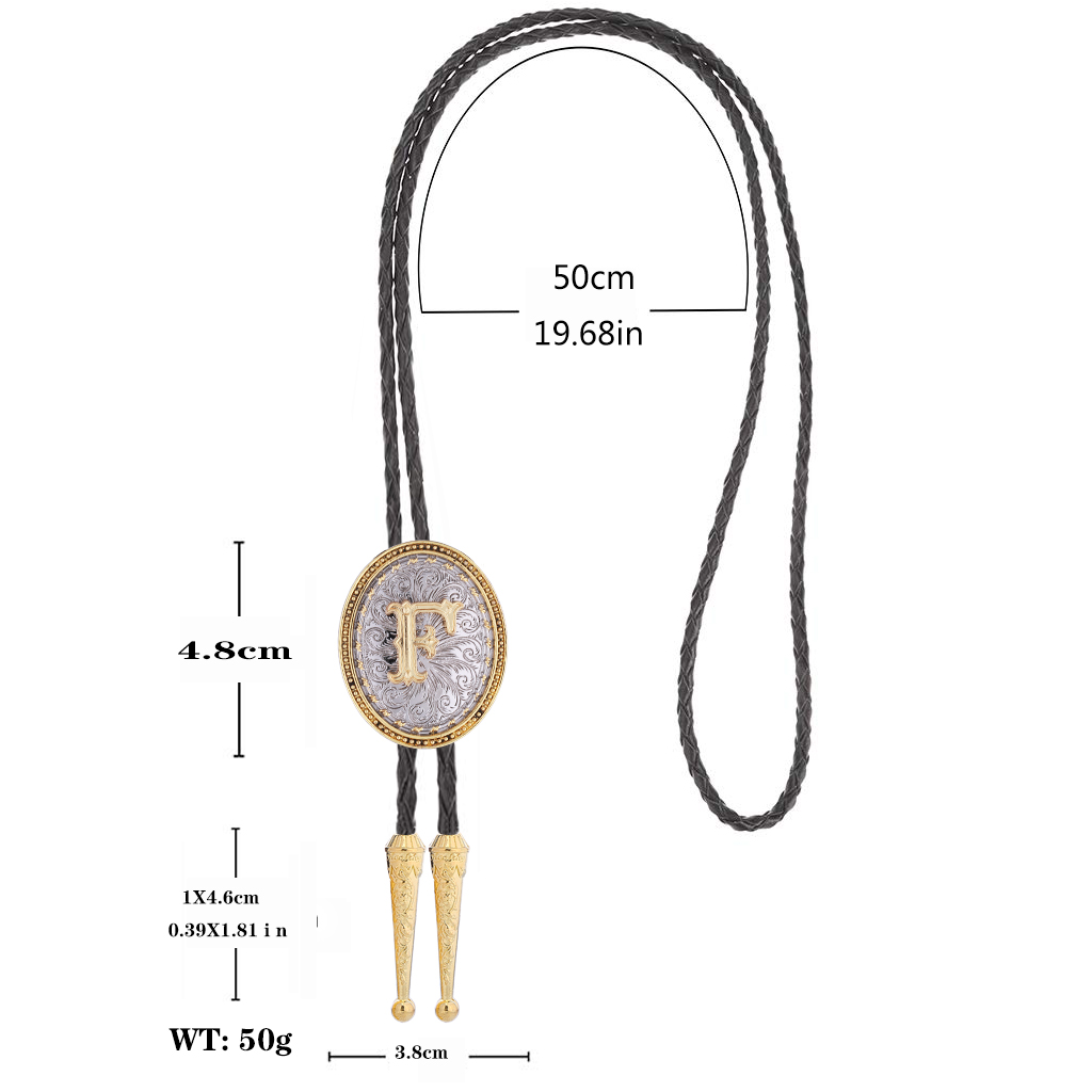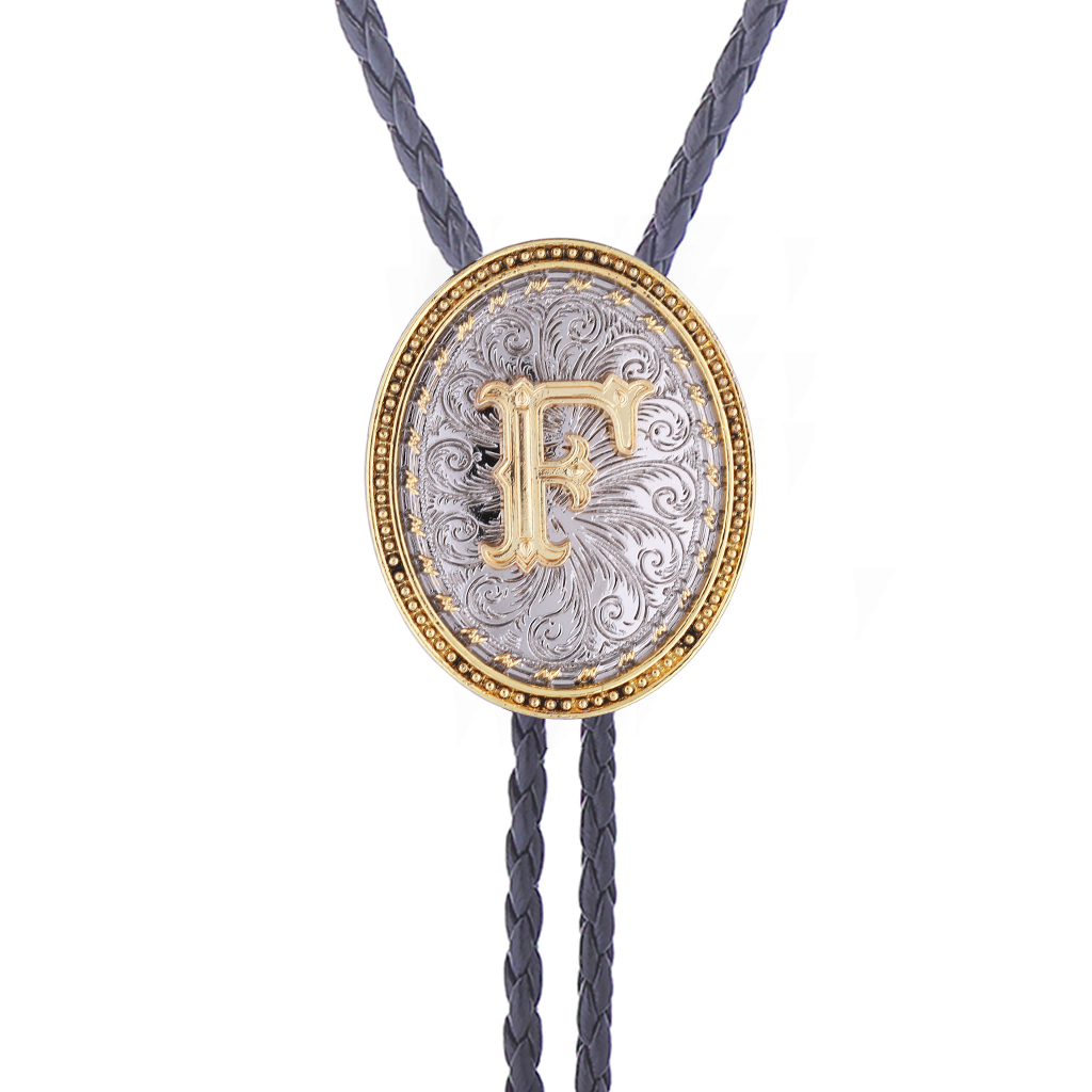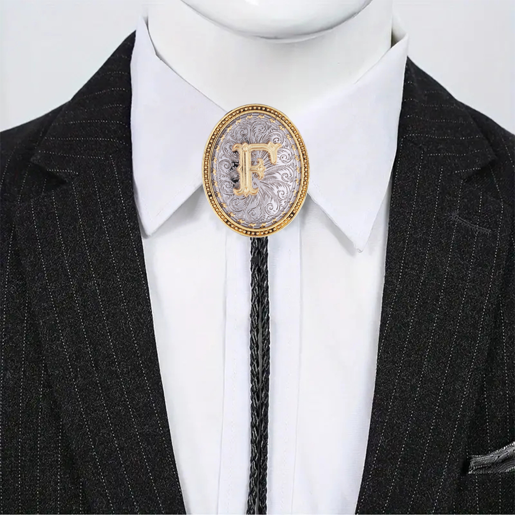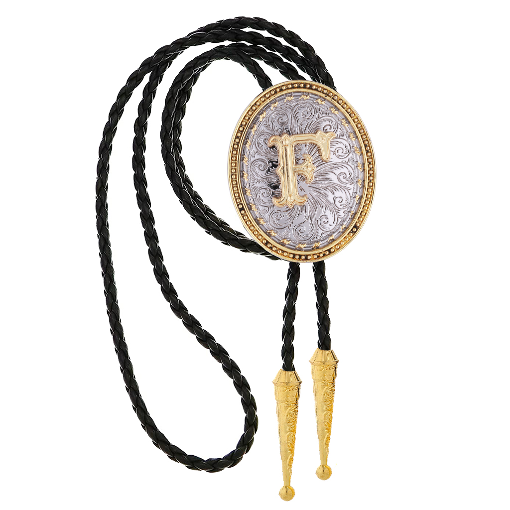 Mens Bolo Ties Western Wedding - Golden Initial Letter ABCDMJR to Z