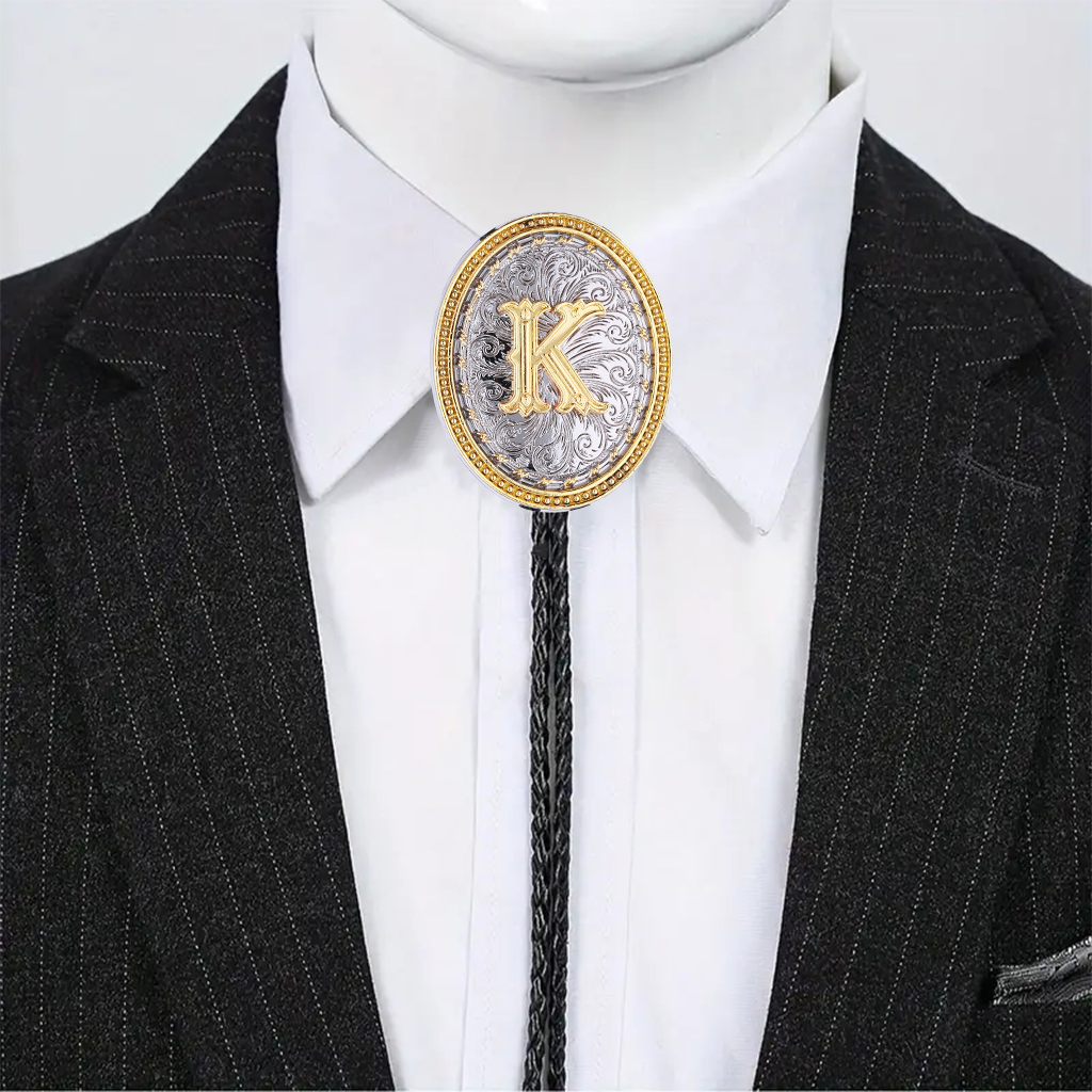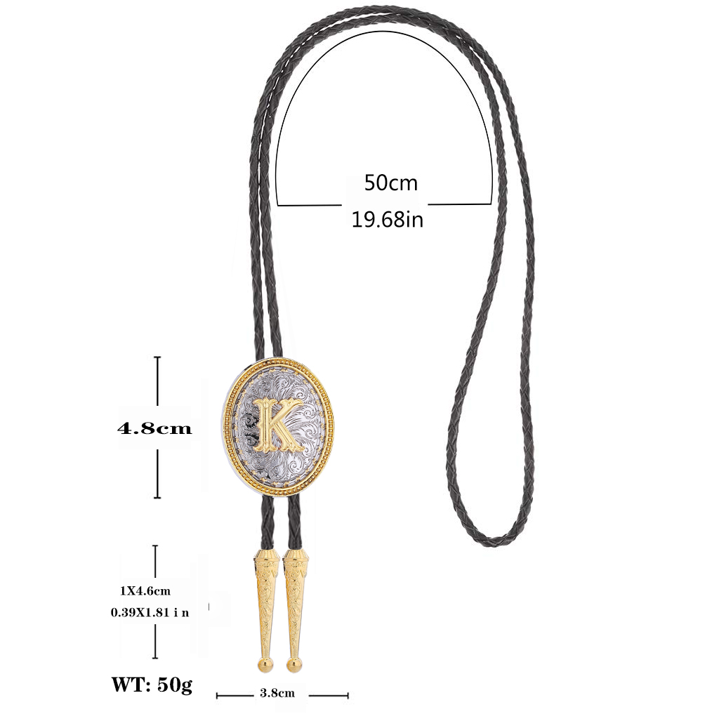 Men's Bolo String Ties - Golden Initial Letter ABCDMJR to Z Womens Western Bolo Necklace Texas Style Jewelry