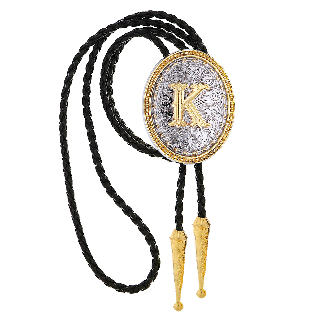 GelConnie Western Ties for Men Cowboy Wedding Necklace Leather Cowgirl Necktie Native American Initial Letter ABCDMJR to Z Costume Bolo Ties