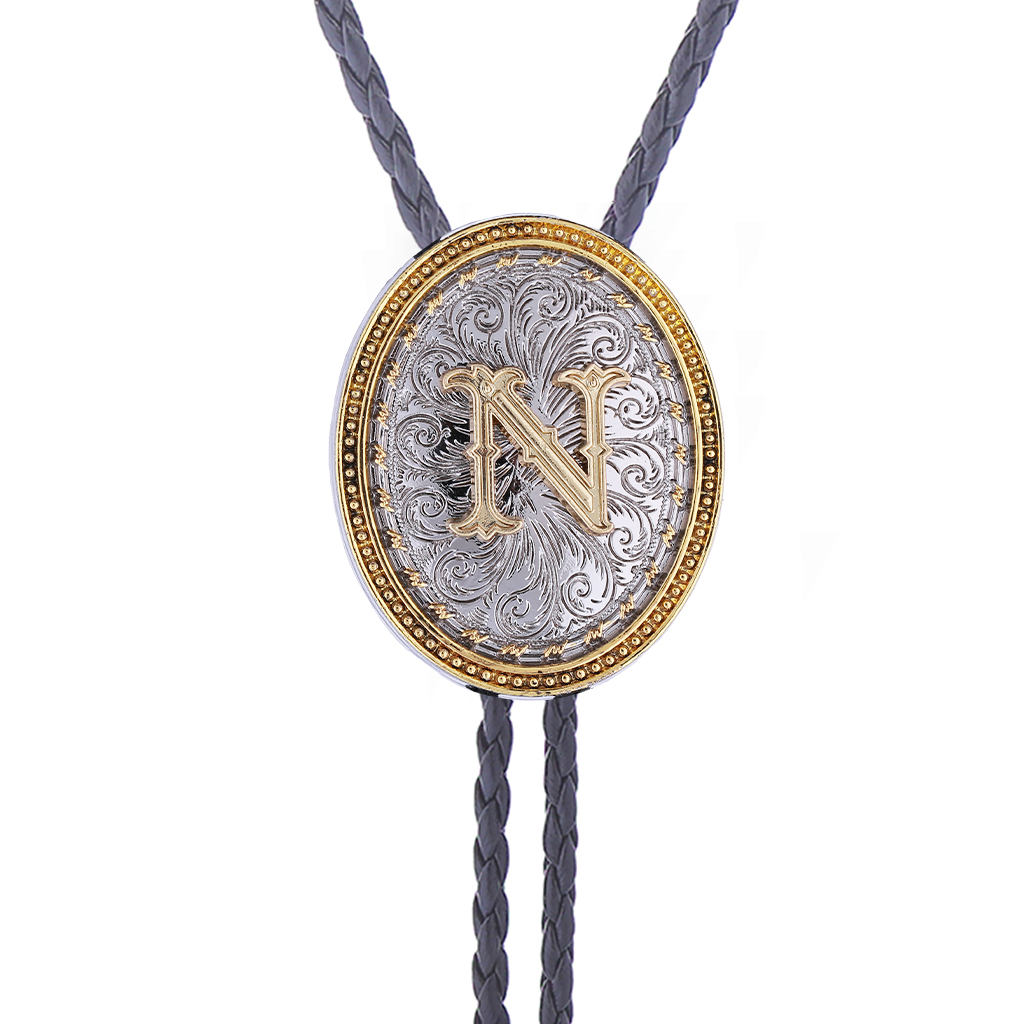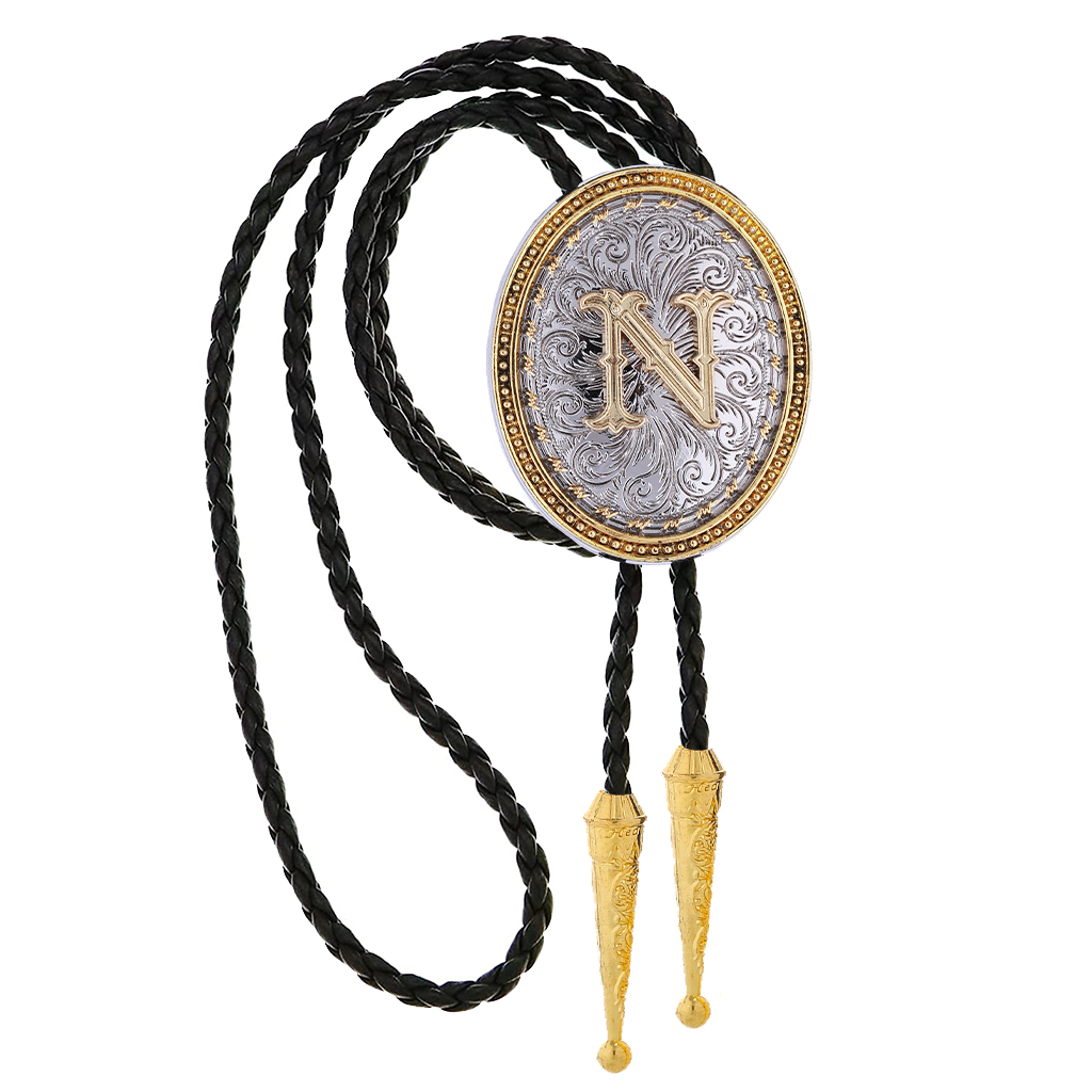 Vintage Bolo Tie Women - Golden Initial Letter ABCDMJR to Z Womens Western Bolo Necklace Texas Style Jewelry