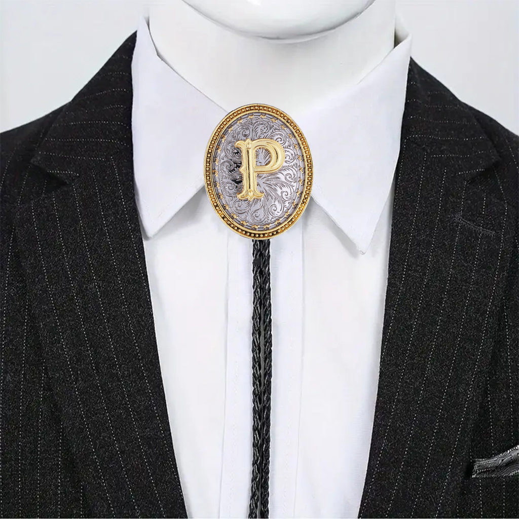 Custom Bolo Tie Men - Golden Initial Letter ABCDMJR to Z Cowboy Leather Necklace for Women Leather Rope Necktie