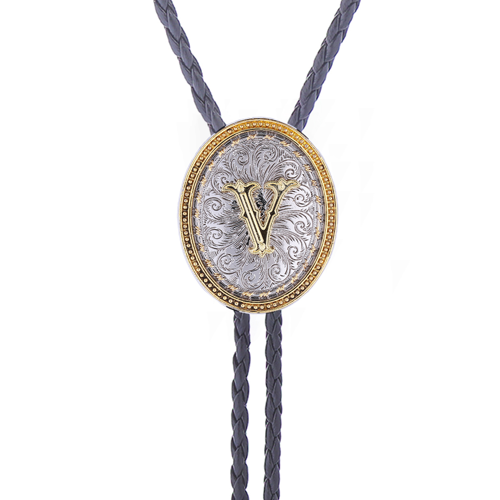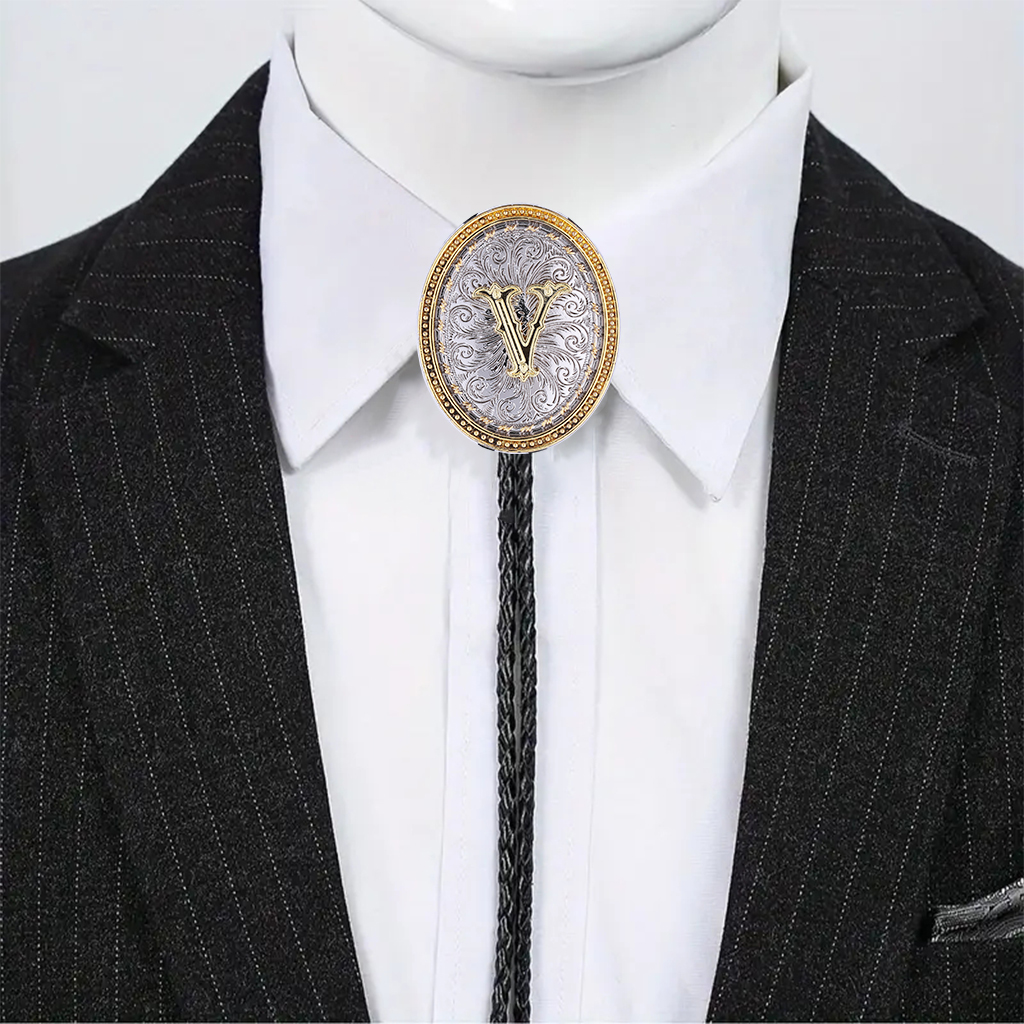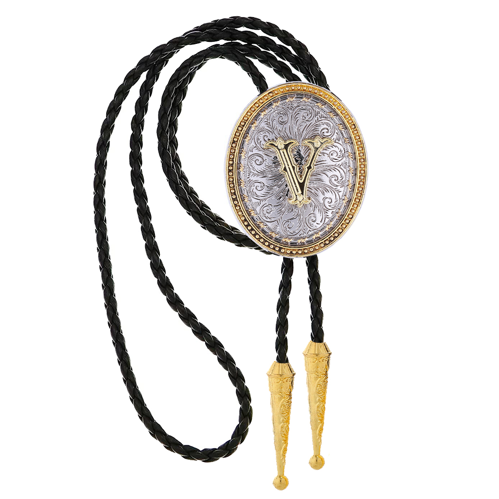 Mens Western Costume Accessories - Golden Initial Letter ABCDMJR to Z Western Cowboy Bolo Tie for Women Mens Cowboy Jewelry
