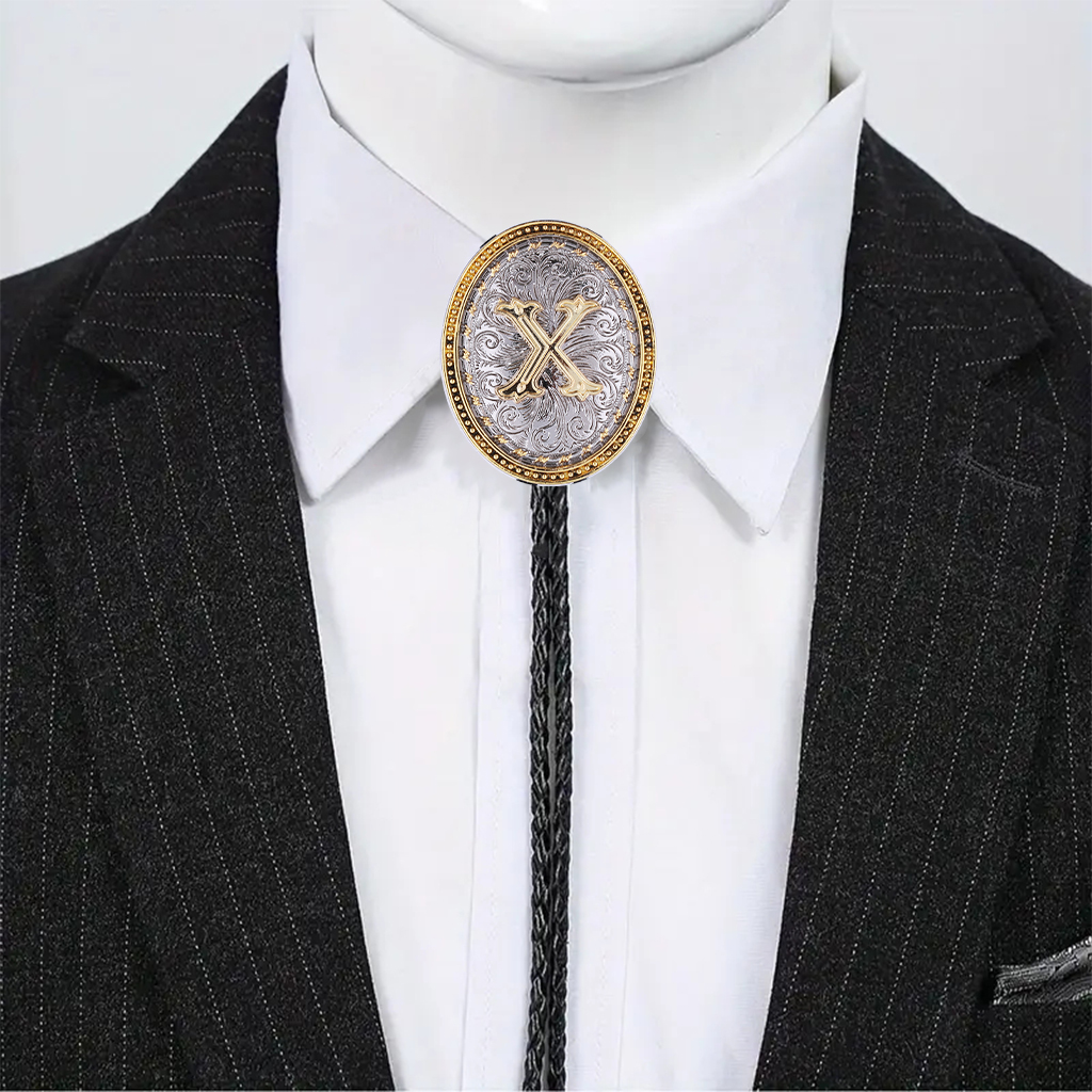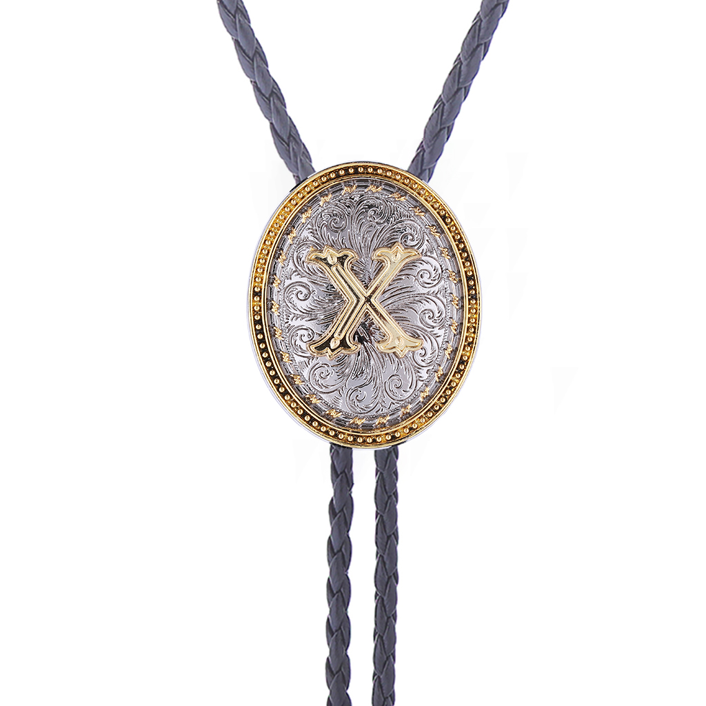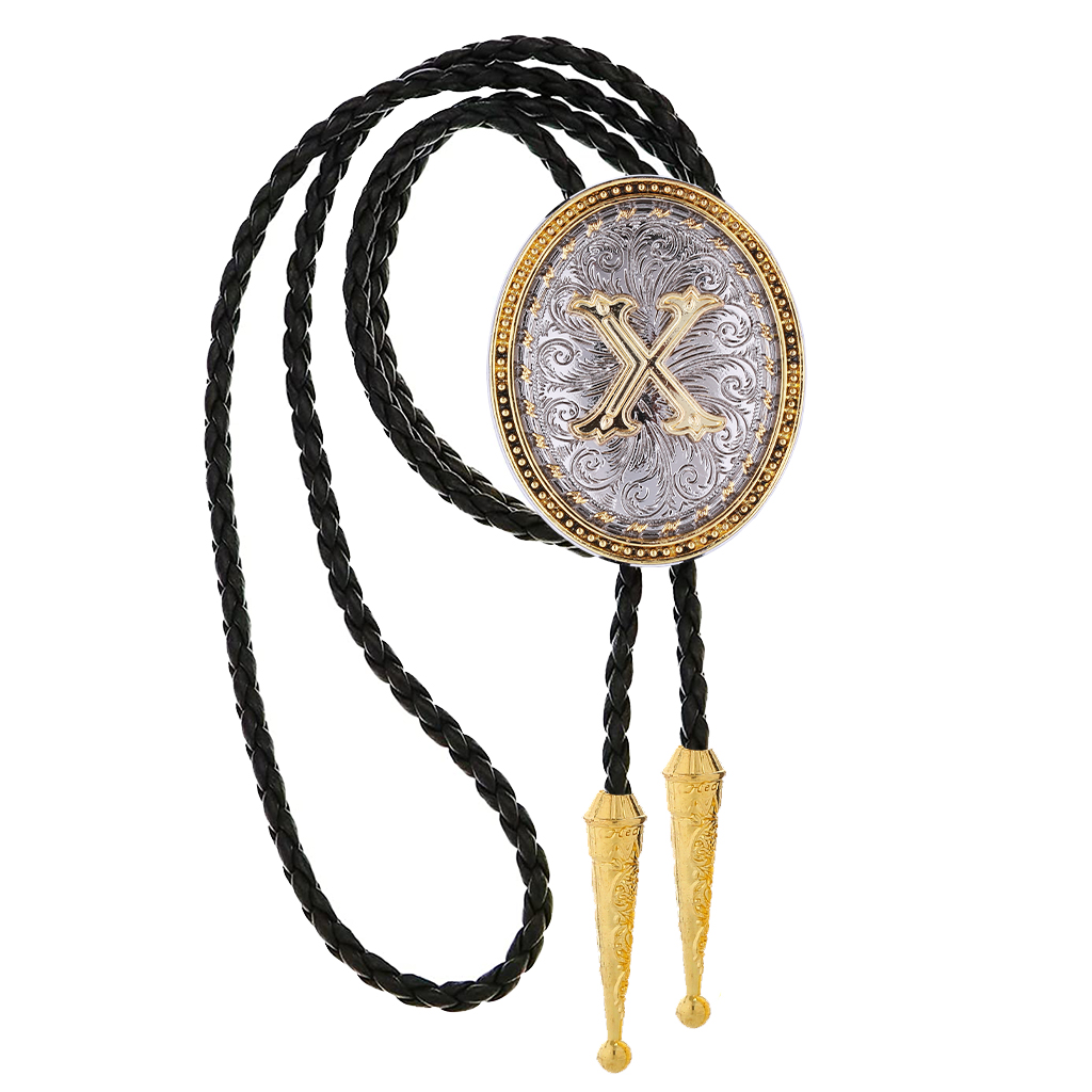 Cowboy Necklaces for Men - Golden Initial Letter ABCDMJR to Z Leather Necktie Accessories Texas Style Jewelry