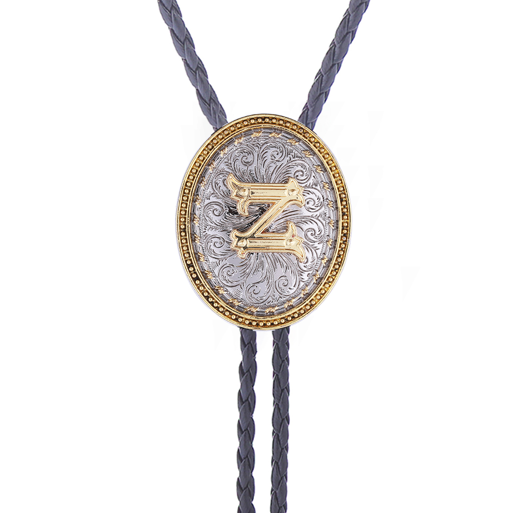 GelConnie Bolo Tie for Men Golden Initial Letter ABCDMJR to Z Western Cowboy Bolo Tie for Women Cowgirl Necktie