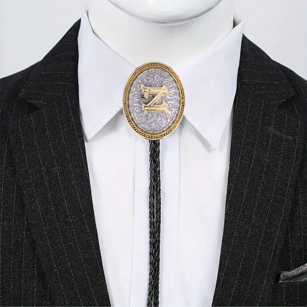 Bolo Tie for Men - Golden Initial Letter ABCDMJR to Z Western Cowboy Bolo Tie for Women Leather Rope Necktie Texas Style Jewelry