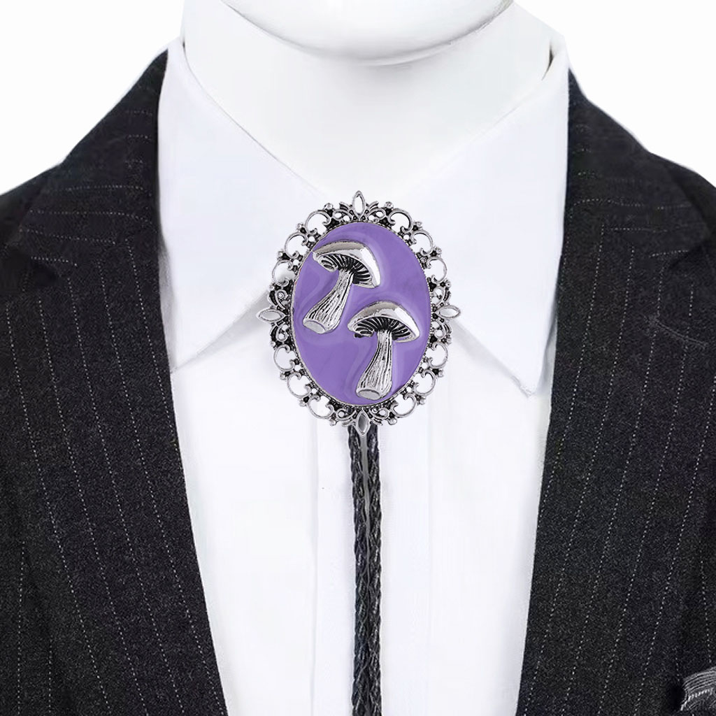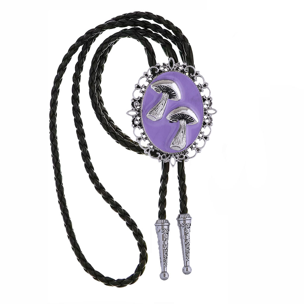 Mushroom Bolo Tie for Men Women Leather Necktie Western Cowboy Accessories Men