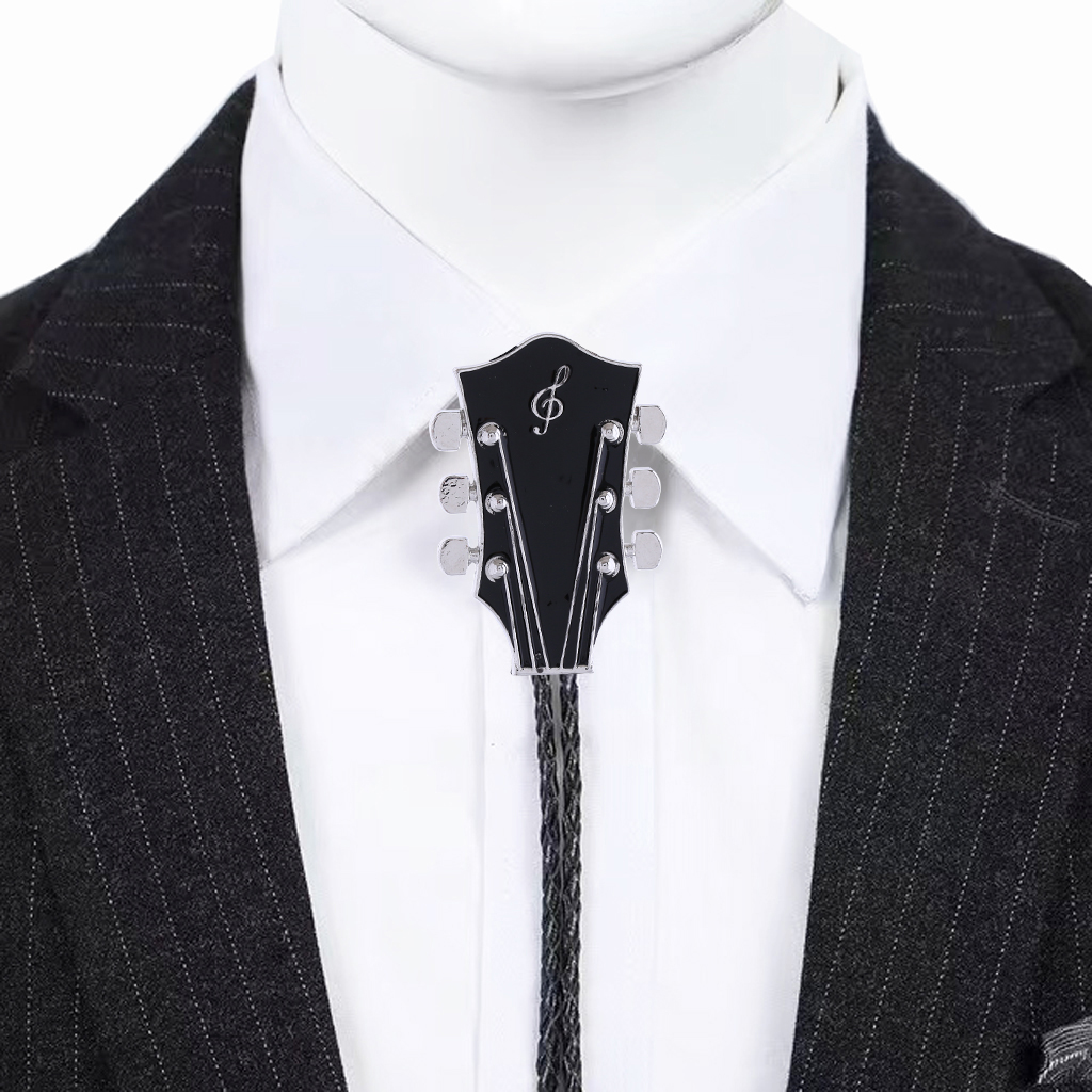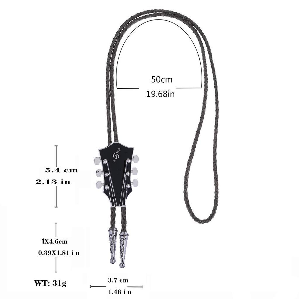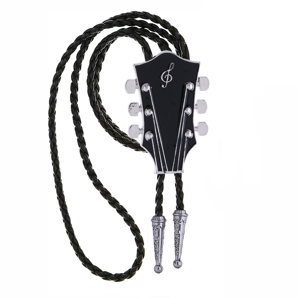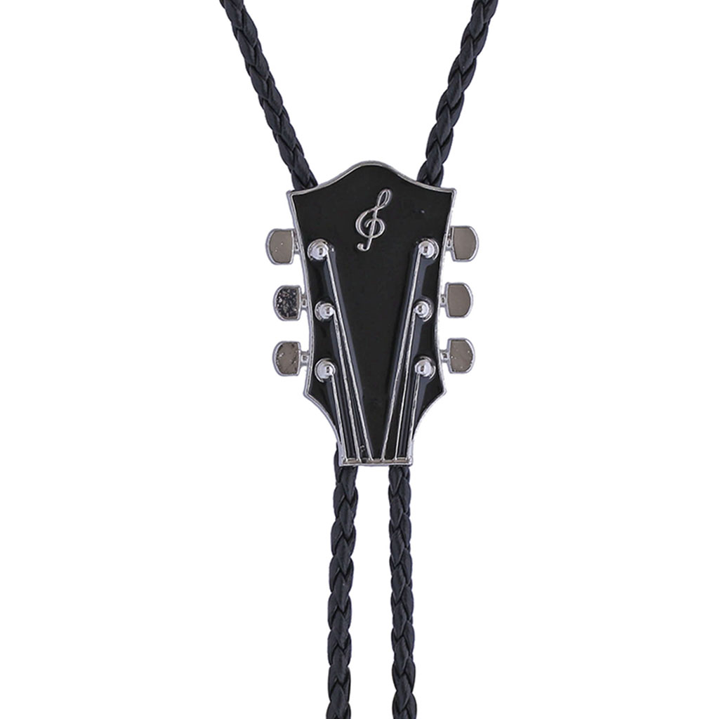 GelConnie Mens Native Western Cowboy Bolo Tie Country Music Guitar Head Bolo Tie Leather Necktie Necklace for Women Men