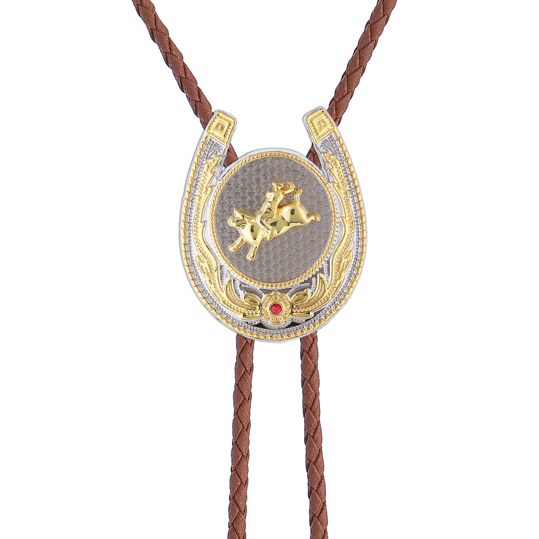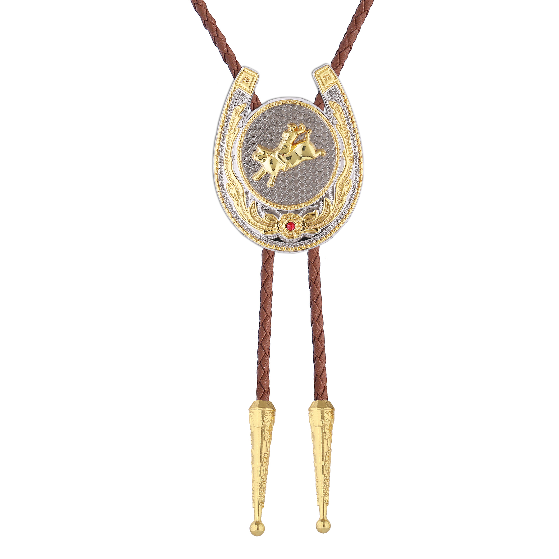 Gelconnie String Ties for Men Horseshoe Shaped Pendant Bolo Ties Rodeo Cowboy Leather Necktie Bull Rider Figure Vintage Style