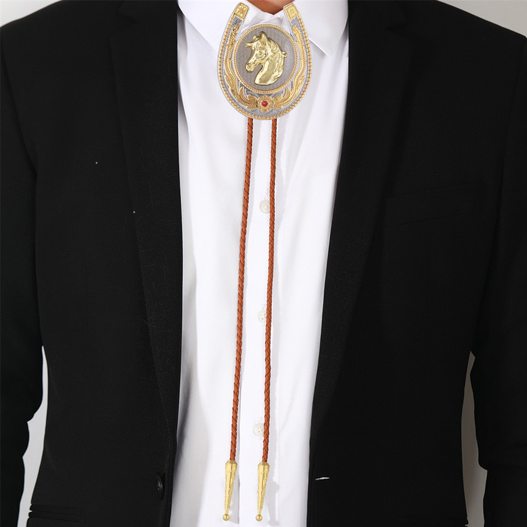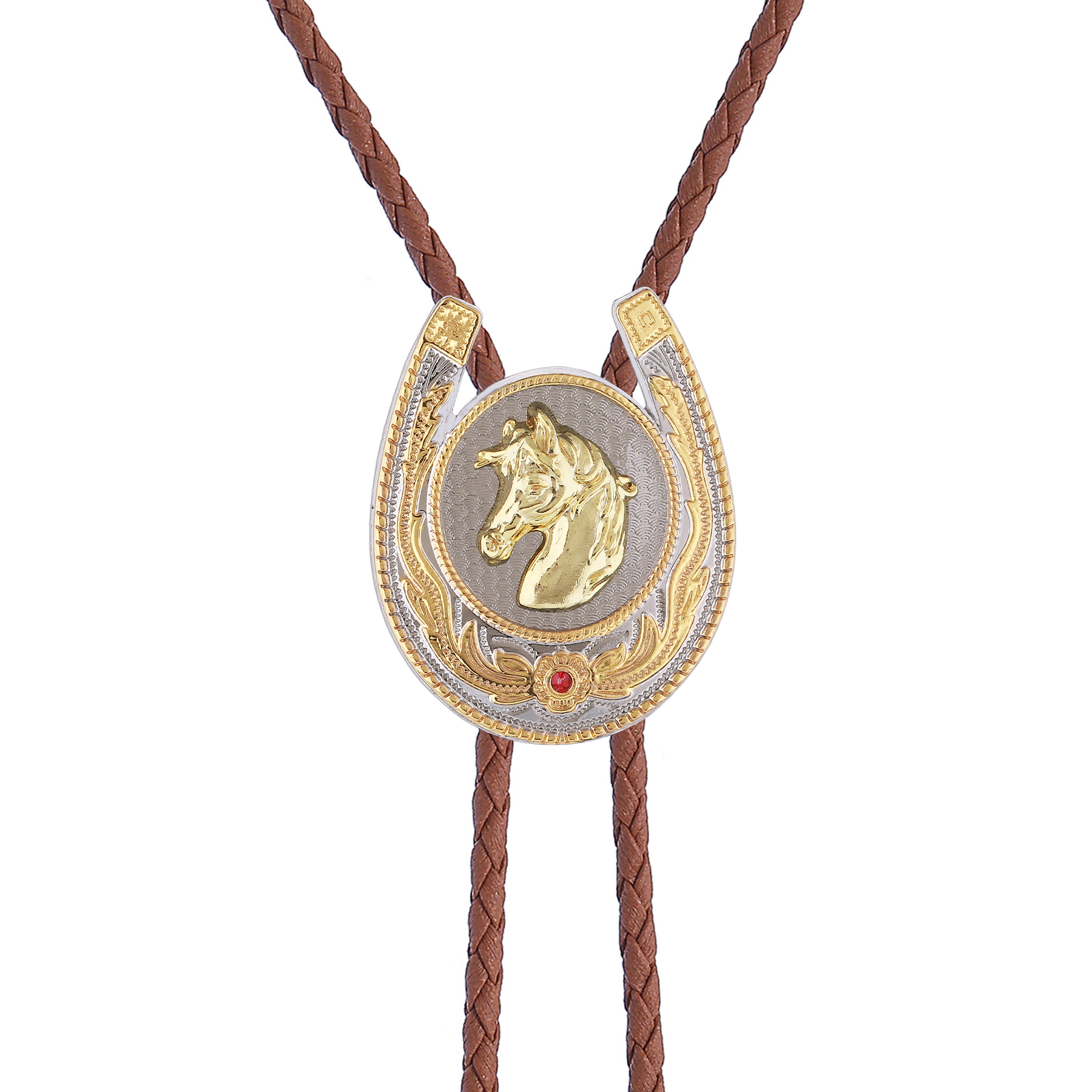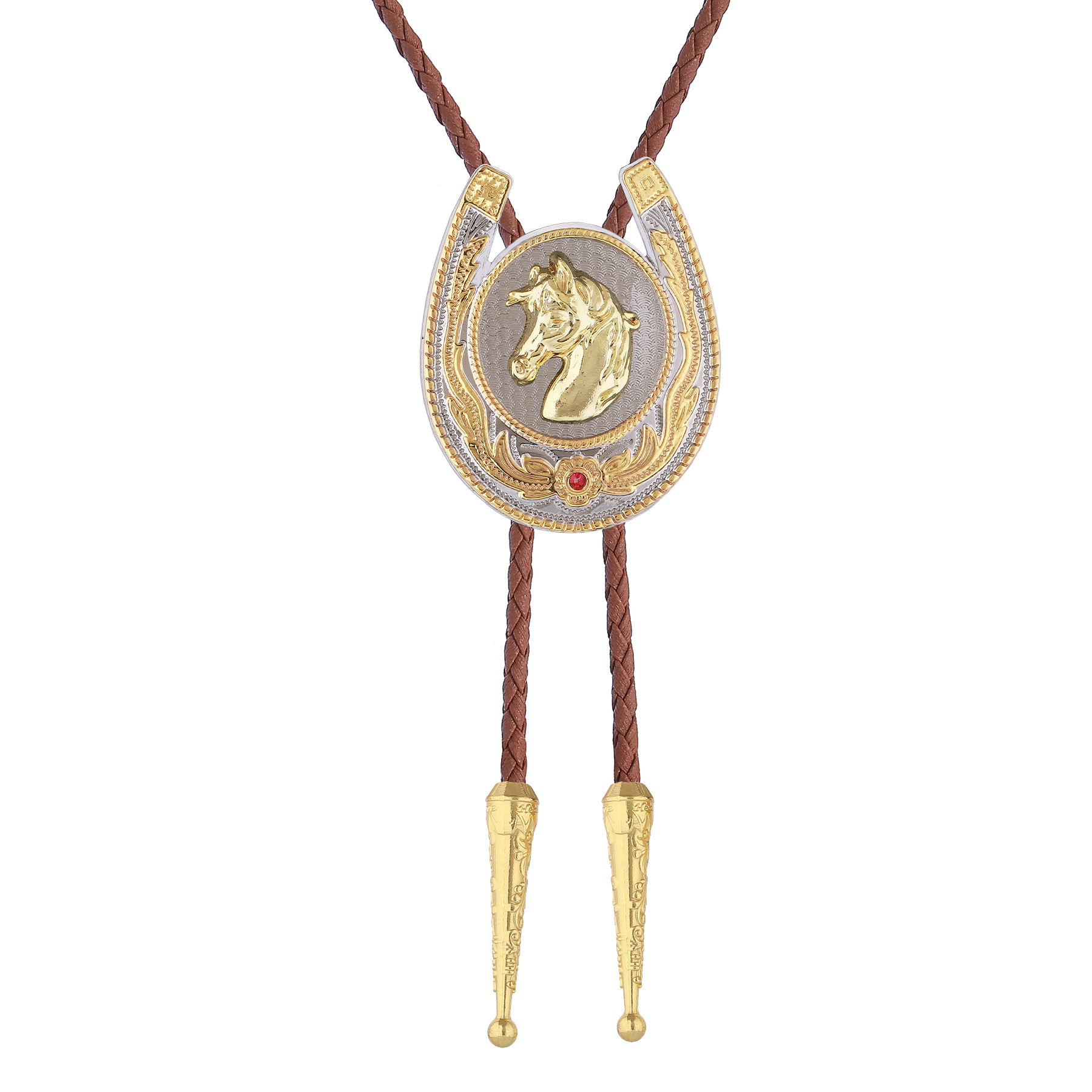 Gelconnie Bolo Tie for Men Western Cowboy American Golden Horse Bolo Ties Brown Leather Western Costume Accessories