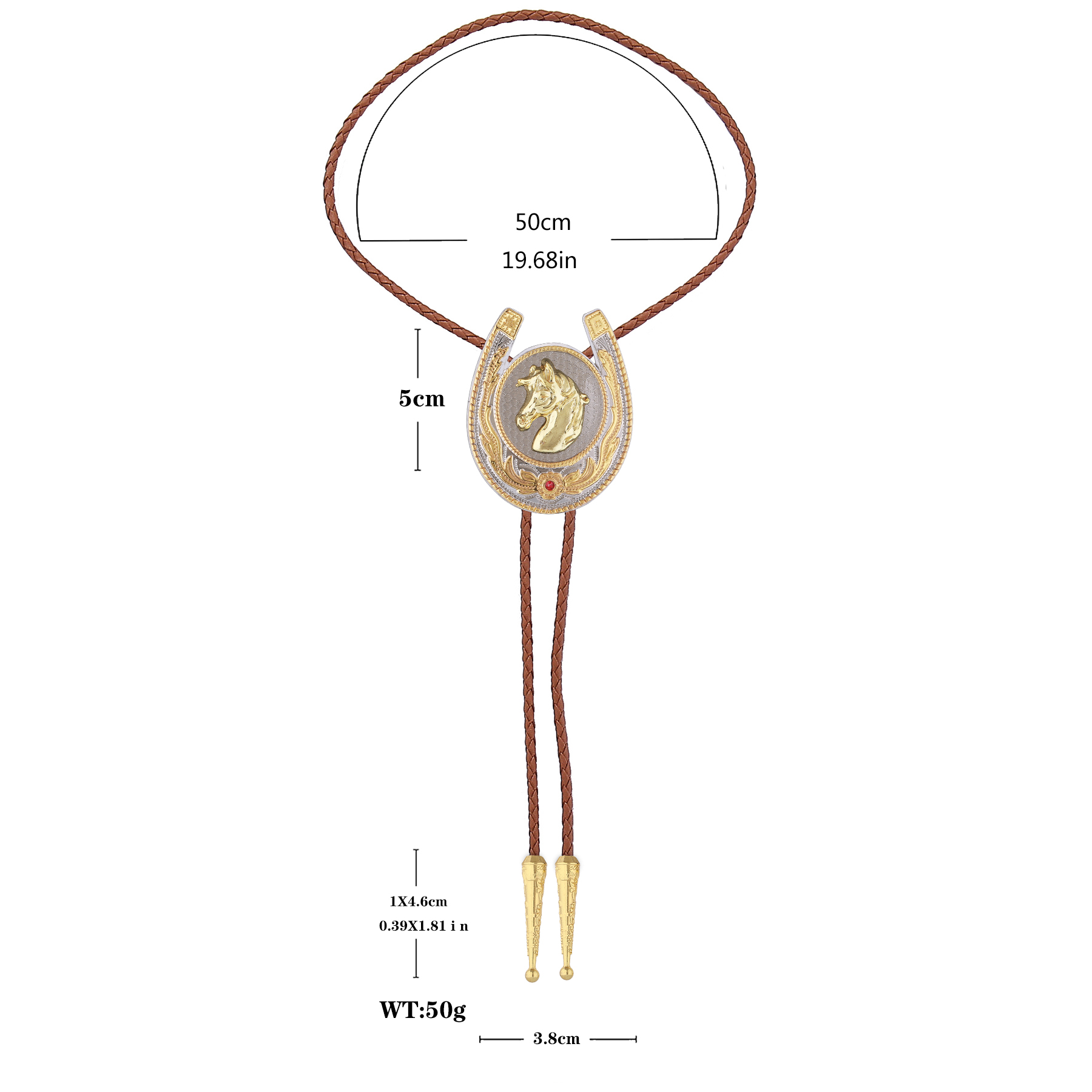 Our cowboy bolo tie measures leather rope length 19.7 inches,You can slide up and down to adjust the size of the tie.