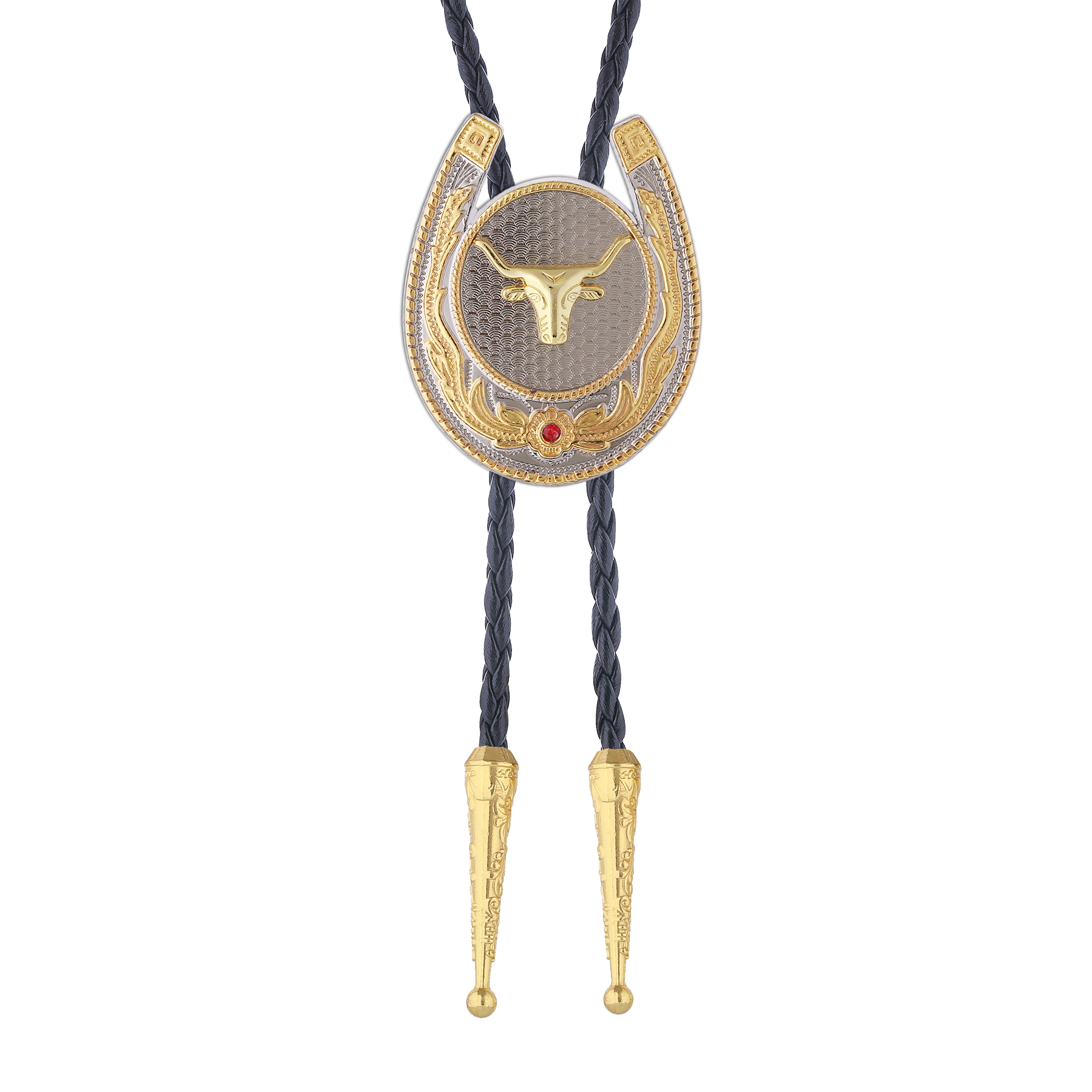 Gelconnie Cowboy Bolo Ties for Men Western Cowboy Golden Longhorn Bolo Ties Rodeo Leather Necktie Western Jewelry