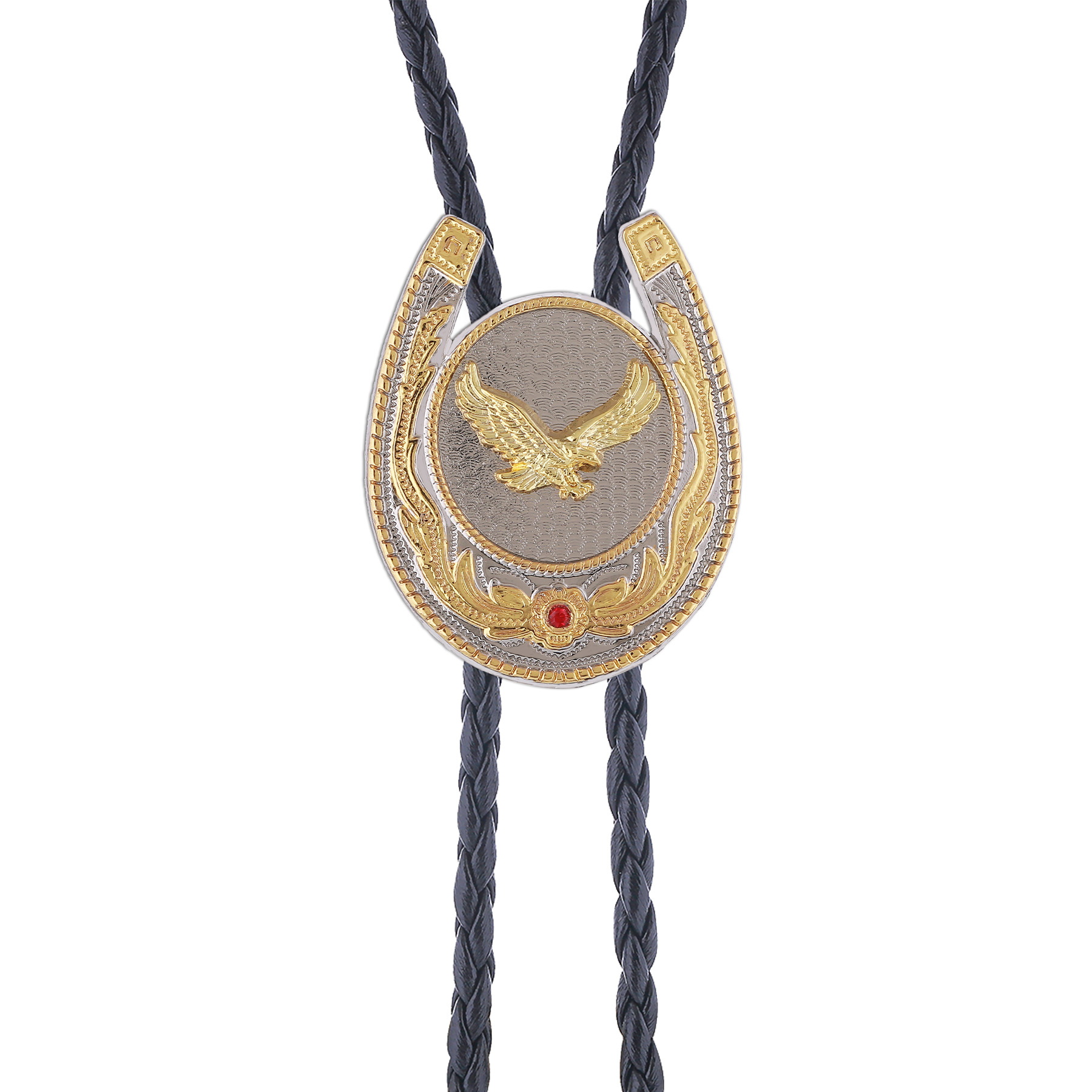 Gelconnie Vintage Bolo Tie for Men Rodeo Gold Neck Ties Rodeo Cowboy Leather Necktie Mens Bolo Ties Western Eagle
