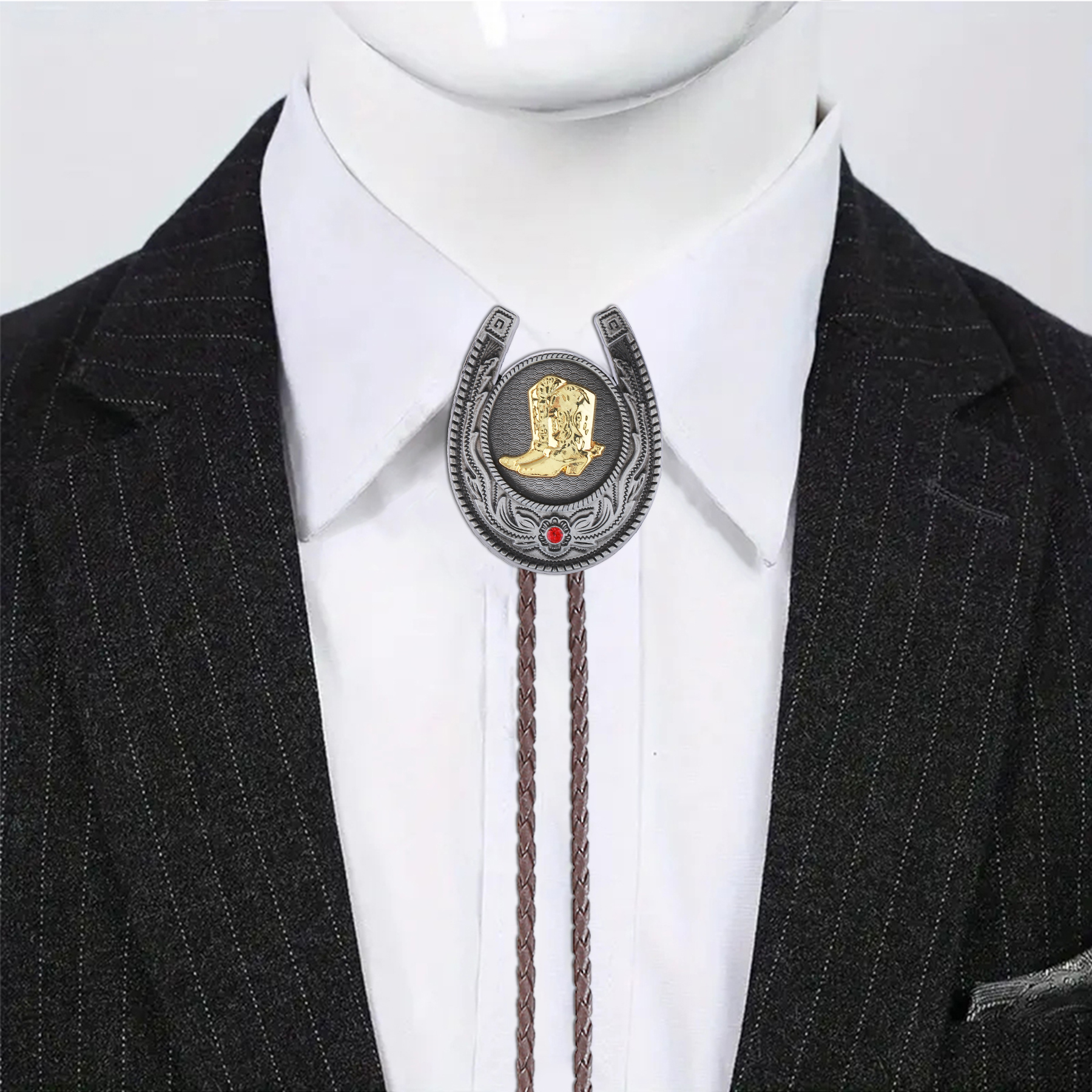 Gelconnie Brown Bolo Tie for Men Native American Leather Bolo Ties Cowboy Bolo Tie Horse Western Boots Western Accessories for Men