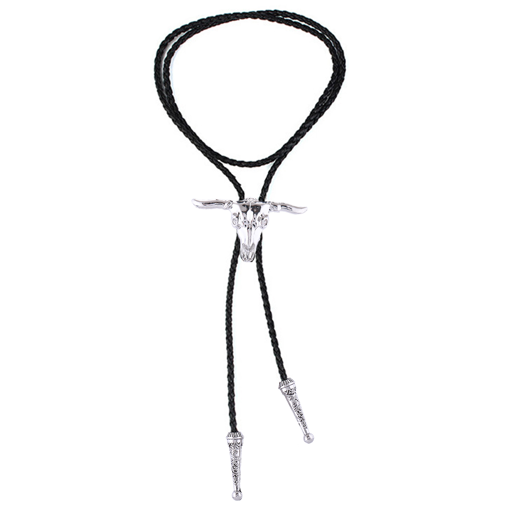 GelConnie Longhorn Bull Bolo Tie String Ties for Men Leather Rodeo Bola Tie Necktie Texas Bolo Tie Halloween Christmas Gifts