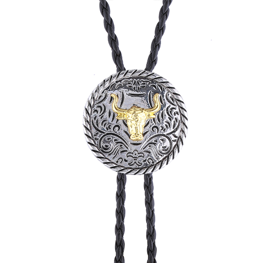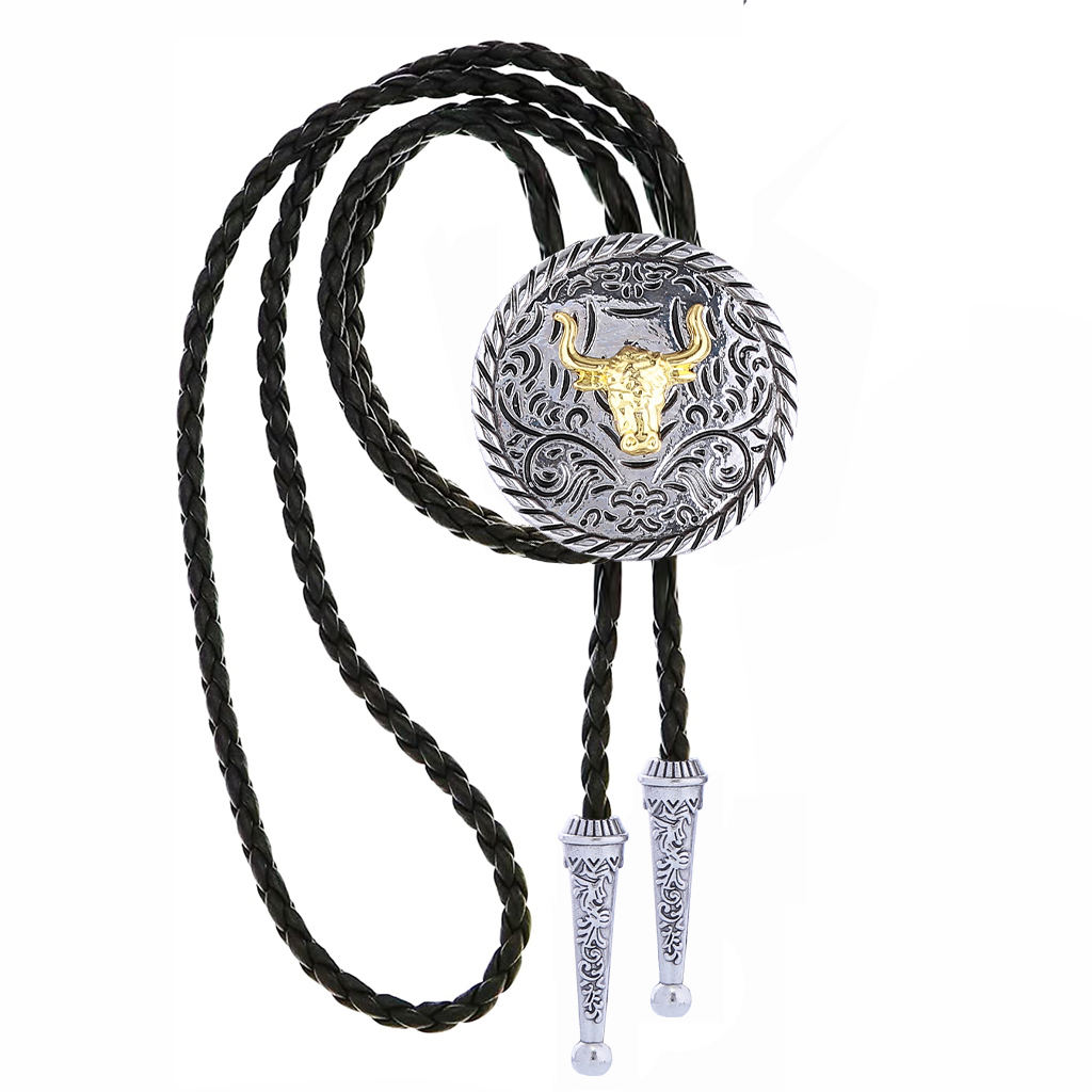 GelConnie Western Cowboy Skull Bolo Tie for Men Women Leather Bolo Ties Bolero Necklace Western Necktie Costume Accessories