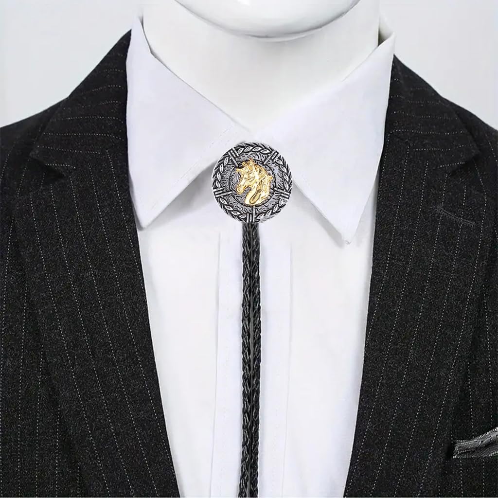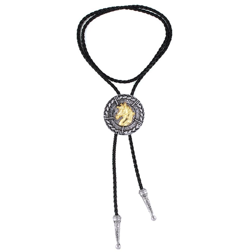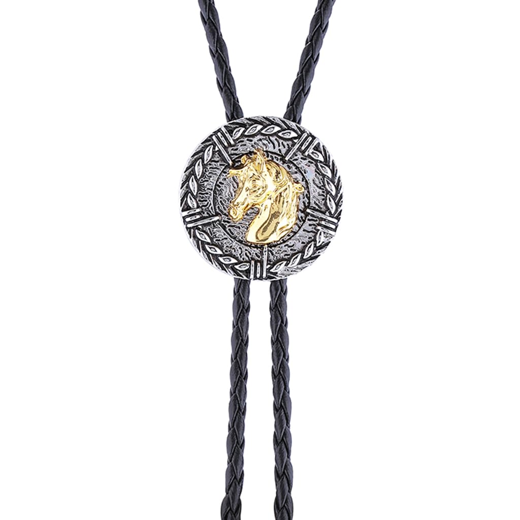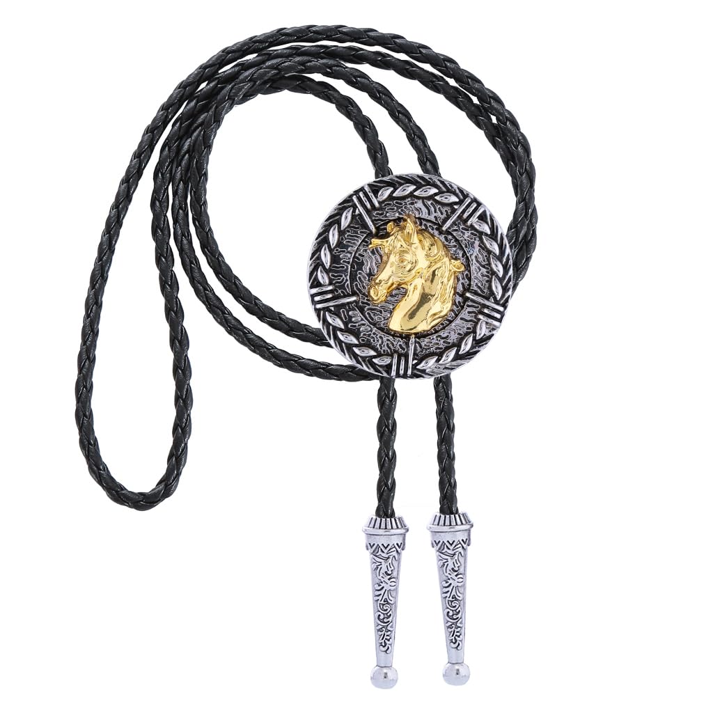 GelConnie Vintage Bolo Tie for Men Native American Golden Horse Bolo Ties Western Cowboy Bolo Tie for Women Leather Necktie