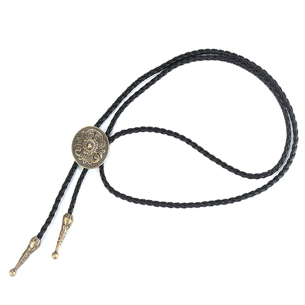 GelConnie Bolo Tie for Women Men Gold Flower Cowboy Necklace Rodeo Leather Necktie Bolo Western Necklace Cowboy Bolo Tie