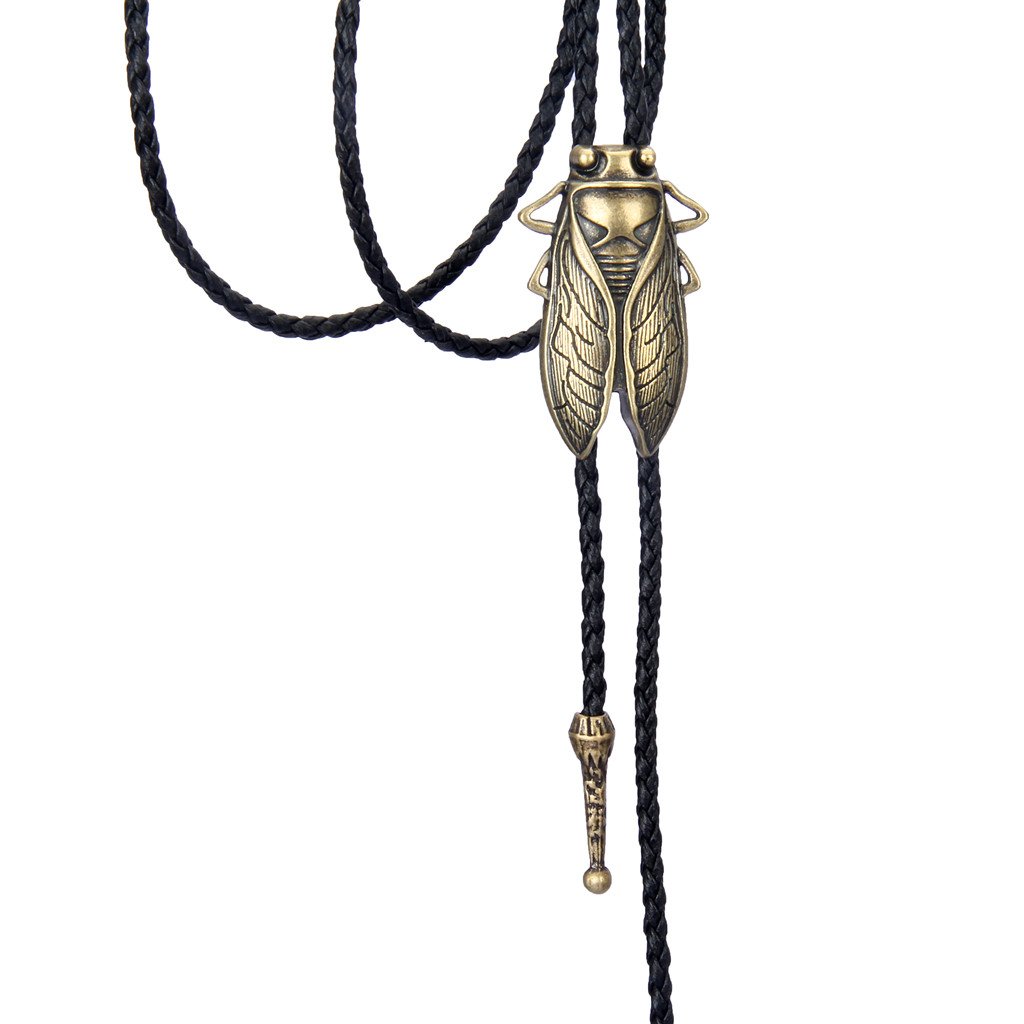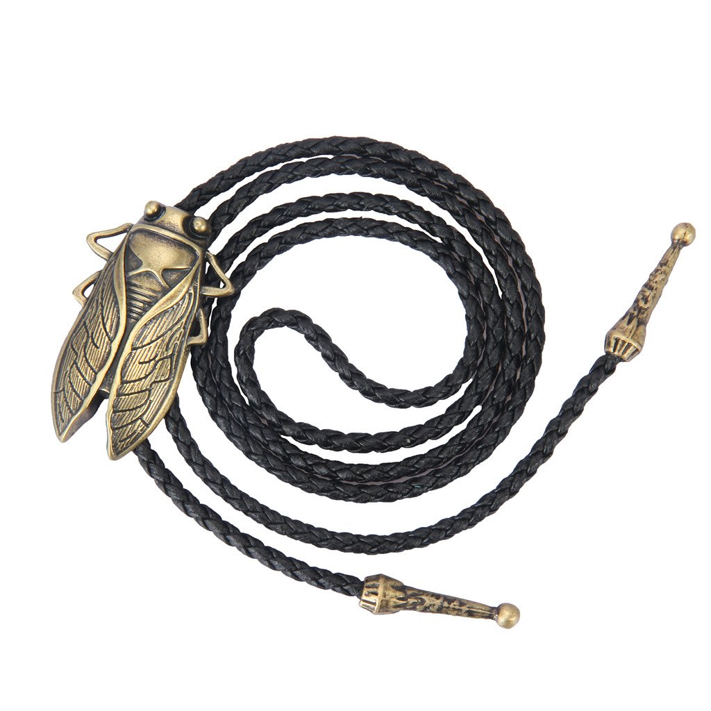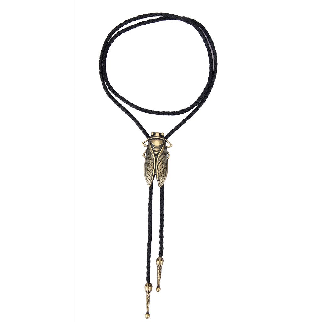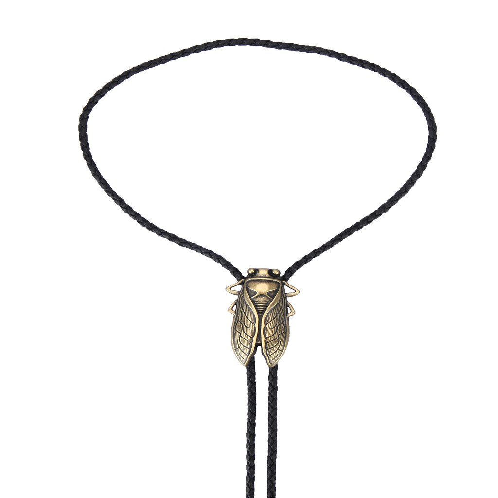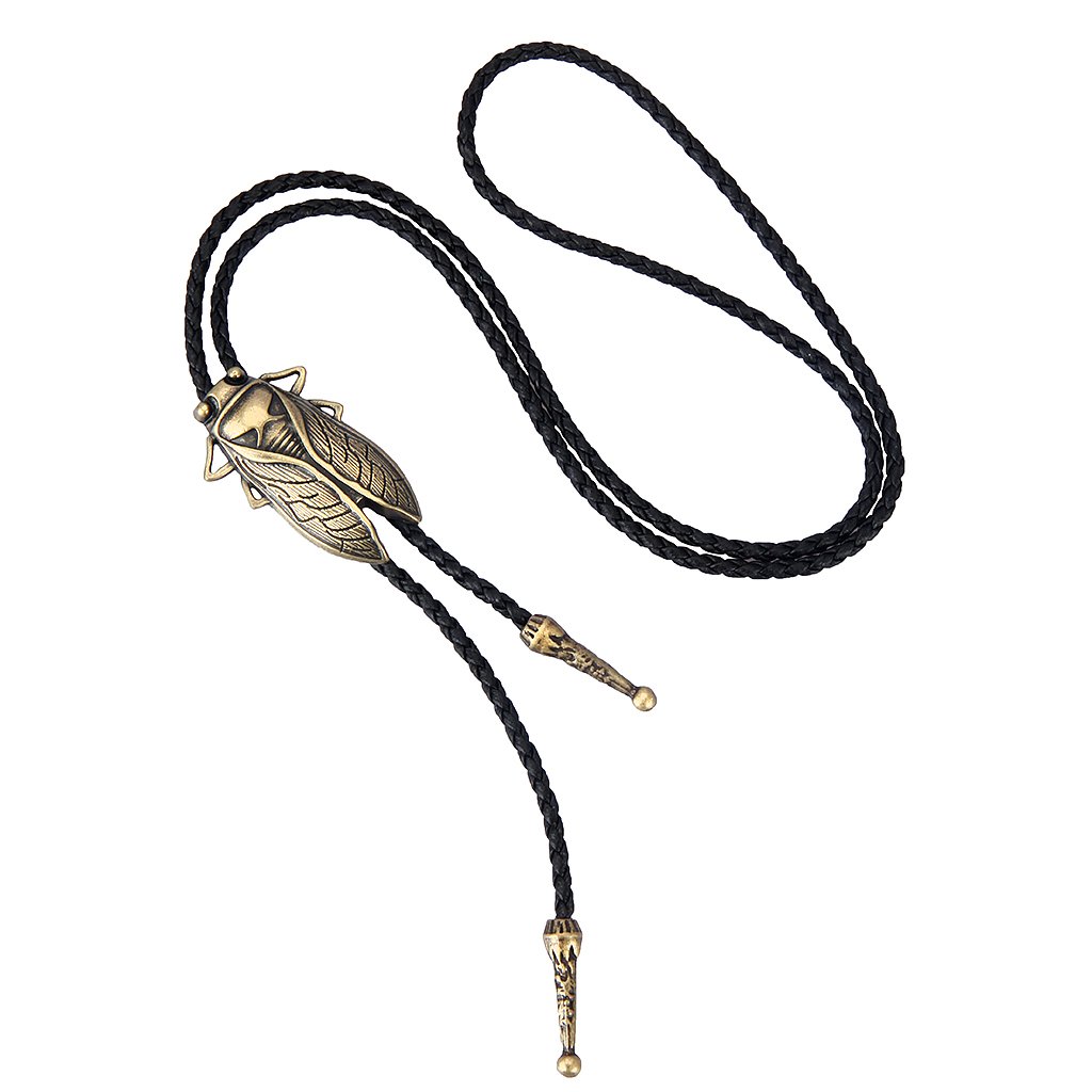 GelConnie Gold Bolo Tie Cowboy Necklace Leather Necktie Cicada Vintage Bolo Tie Rodeo Western Necklaces for Men, Women