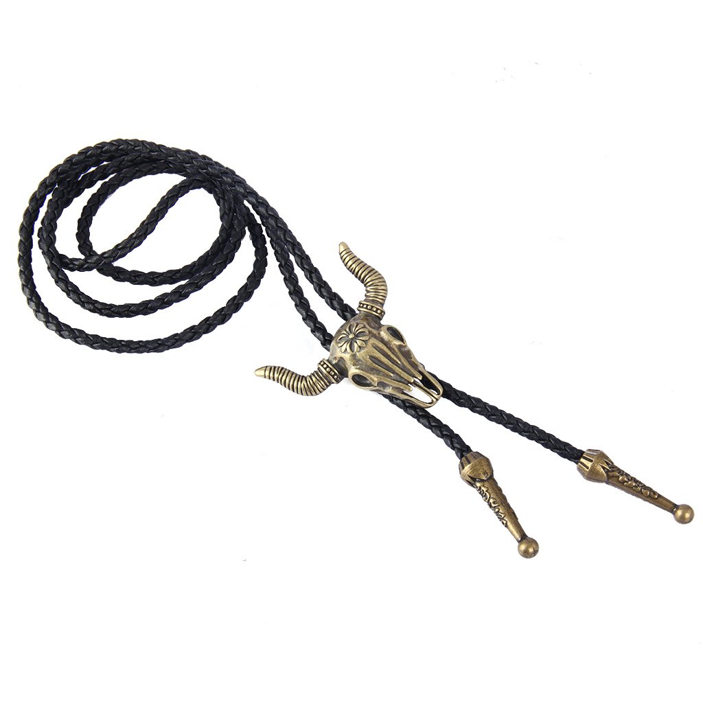 GelConnie Skull Bolo Tie Cowboy Necktie Wedding Tie American Western Tie Leather Necktie Mens Bolo Ties Western Necklace for Men, Women