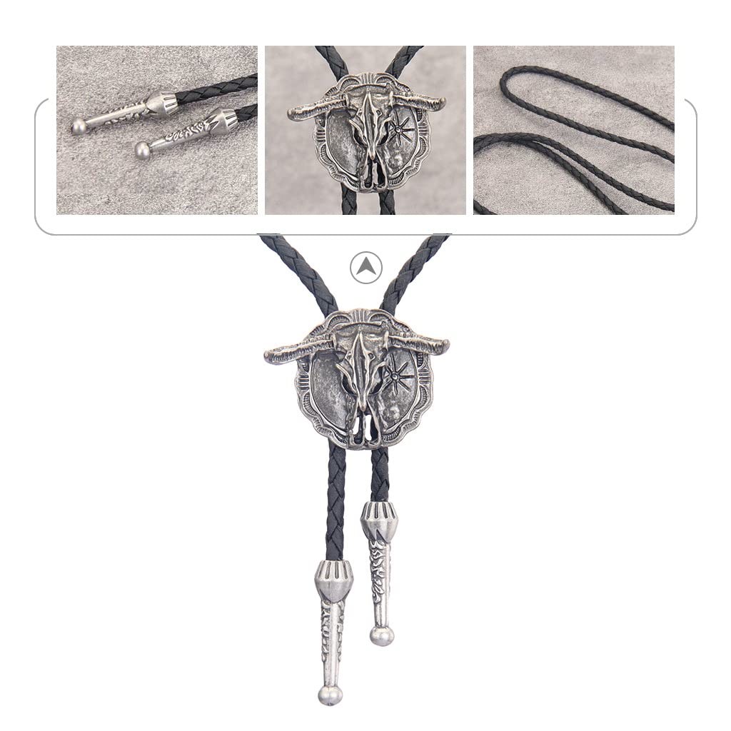 GelConnie Bolo Ties Western Bolo Necklace Mens Bolero Tie Cow Green Bolo Tie Leather Bolo Tie Cowboys Necklace Bolo Neck Tie for Men Women
