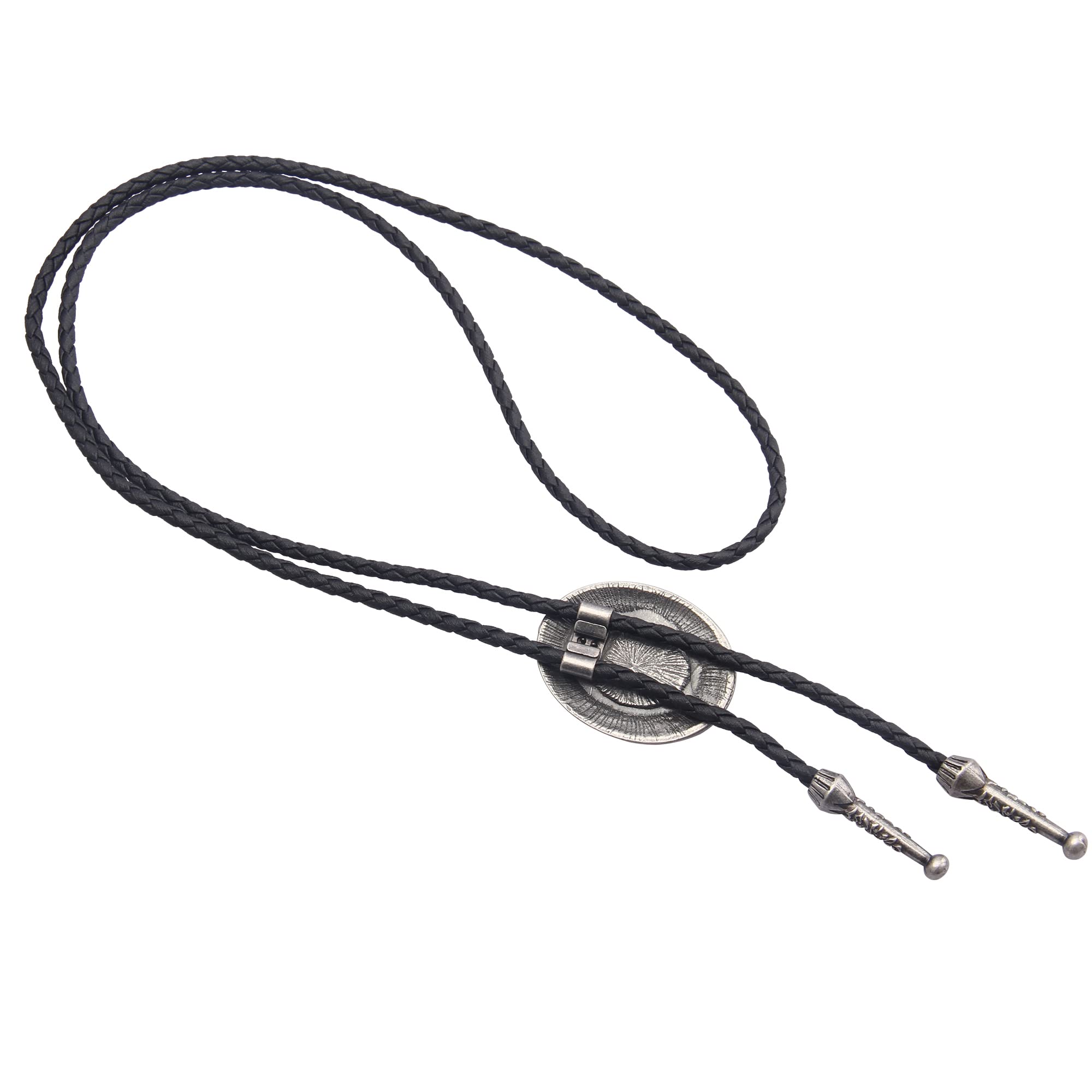 A loose handmade cowboy bolo tie, worn more like a necklace, is a casual accent for any outfit. With adjustable pendant and leather cord connected, you can wear them with anything,